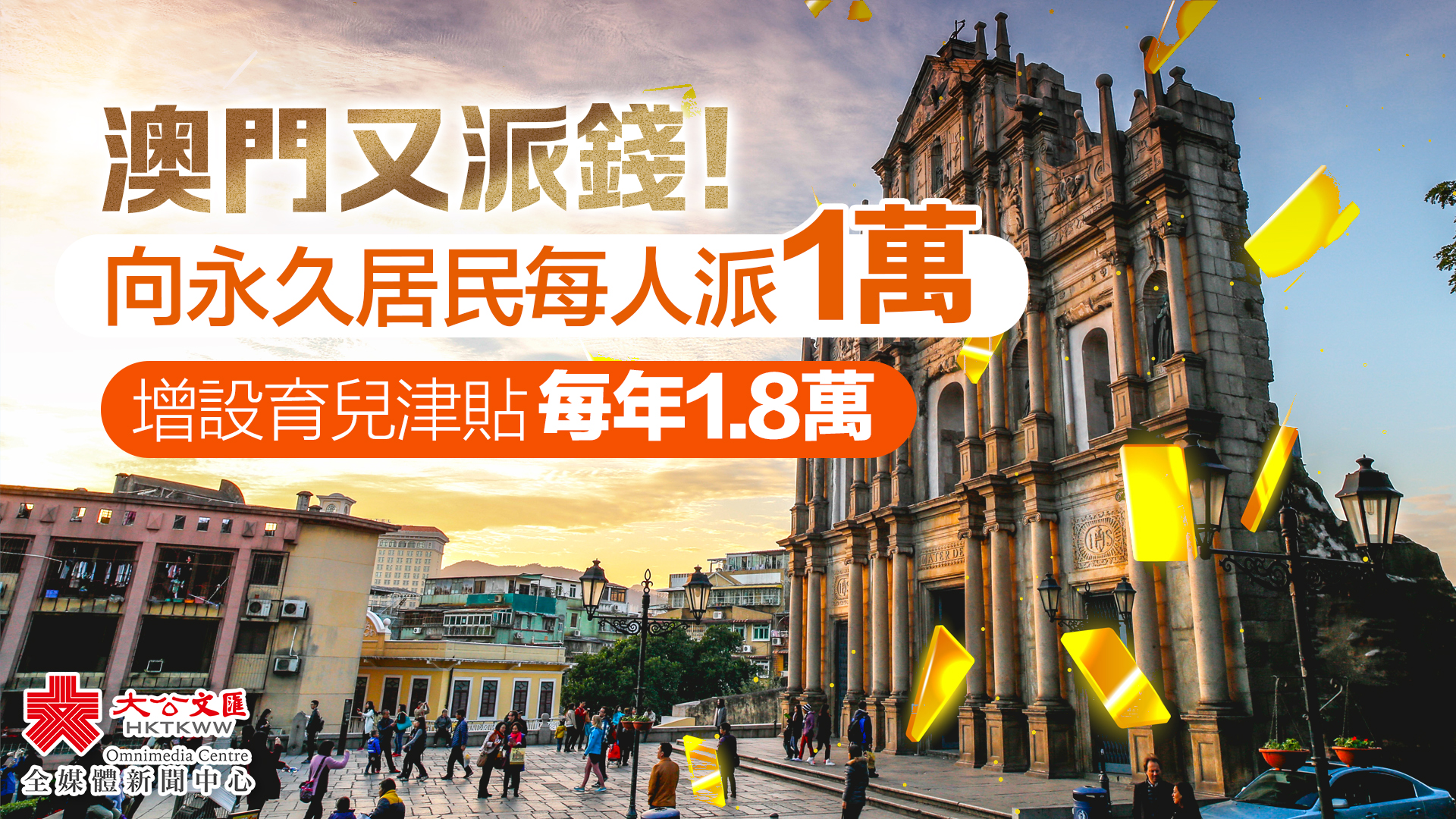 大公文匯全媒體報道,澳門特區行政長官岑浩輝今日(14日)發表任內首份施政報告,主題是「革新謀發展 奮進開新局」。他宣布繼續推行「現金分享計劃」,合資格永久性居民每人獲發10000元,合資格非永久性居民每人獲發6000元,是澳門連續第19年全民「派錢」。