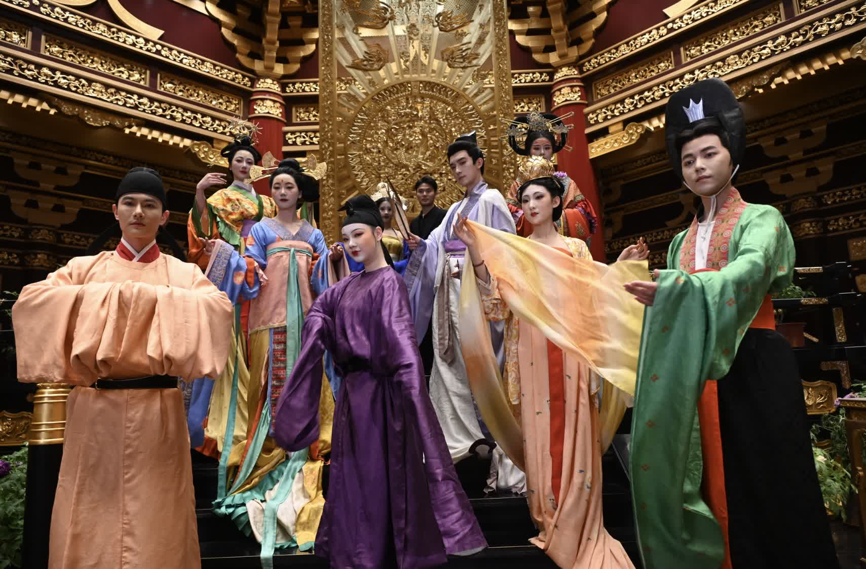 此次展演的服飾皆由資深服飾文化研究者包意凡領銜設計製作,以考古報告、壁畫遺存為經緯,以傳統織造工藝為筋骨,歷時數載潛心考據、反覆推敲,每一處細節皆暗藏歷史密碼。其中逾七成服飾為首次公開亮相,以當代匠心對話千年風華,讓觀者得以在衣香鬢影間觸摸華夏文明的溫度。