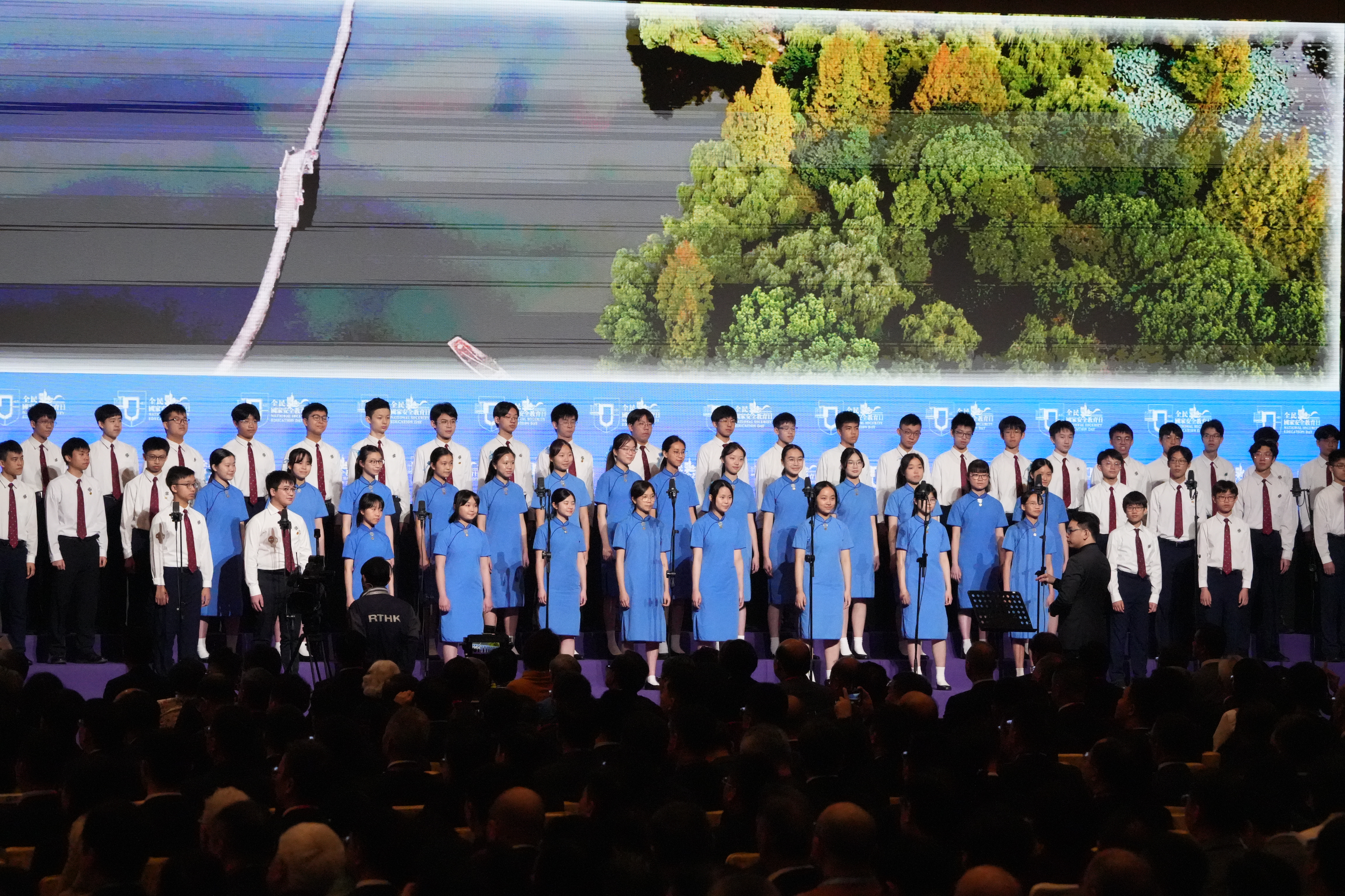 聖保羅男女中學學生首先帶來合唱表演,並由警察銀樂隊伴奏。學生們合唱《我的祖國》、《我們的家》合併歌曲,表達對國家、對香港的深厚情感。