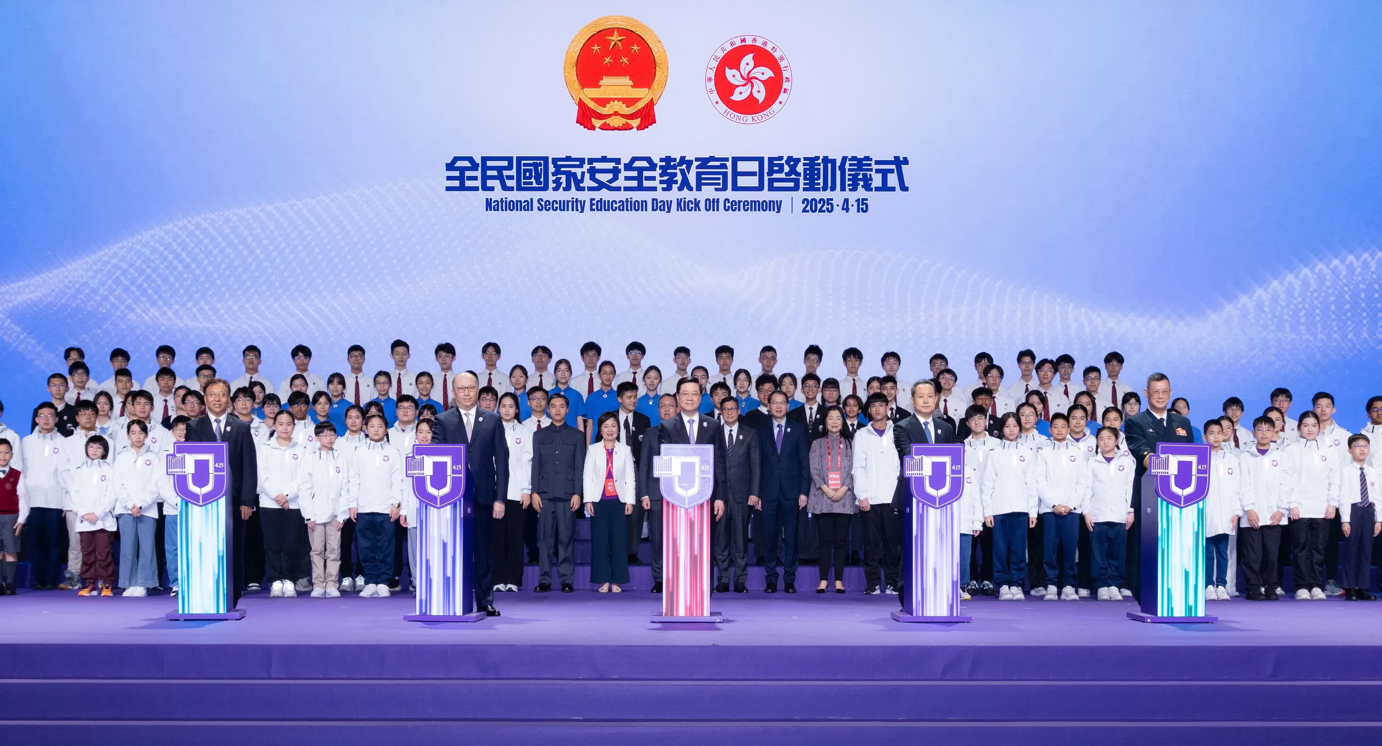 4月15日,香港特區「全民國家安全教育日2025」活動開幕典禮在香港會展中心舉行。中央港澳工作辦公室主任、國務院港澳事務辦公室主任夏寶龍在開幕典禮上發表視頻致辭。香港特區行政長官、國安委主席李家超,中央政府駐港聯絡辦主任、特區國安事務顧問鄭雁雄,以及駐港國安公署署長董經緯、外交部駐港公署特派員崔建春、解放軍駐香港部隊政委賴如鑫等擔任主禮嘉賓並致辭。