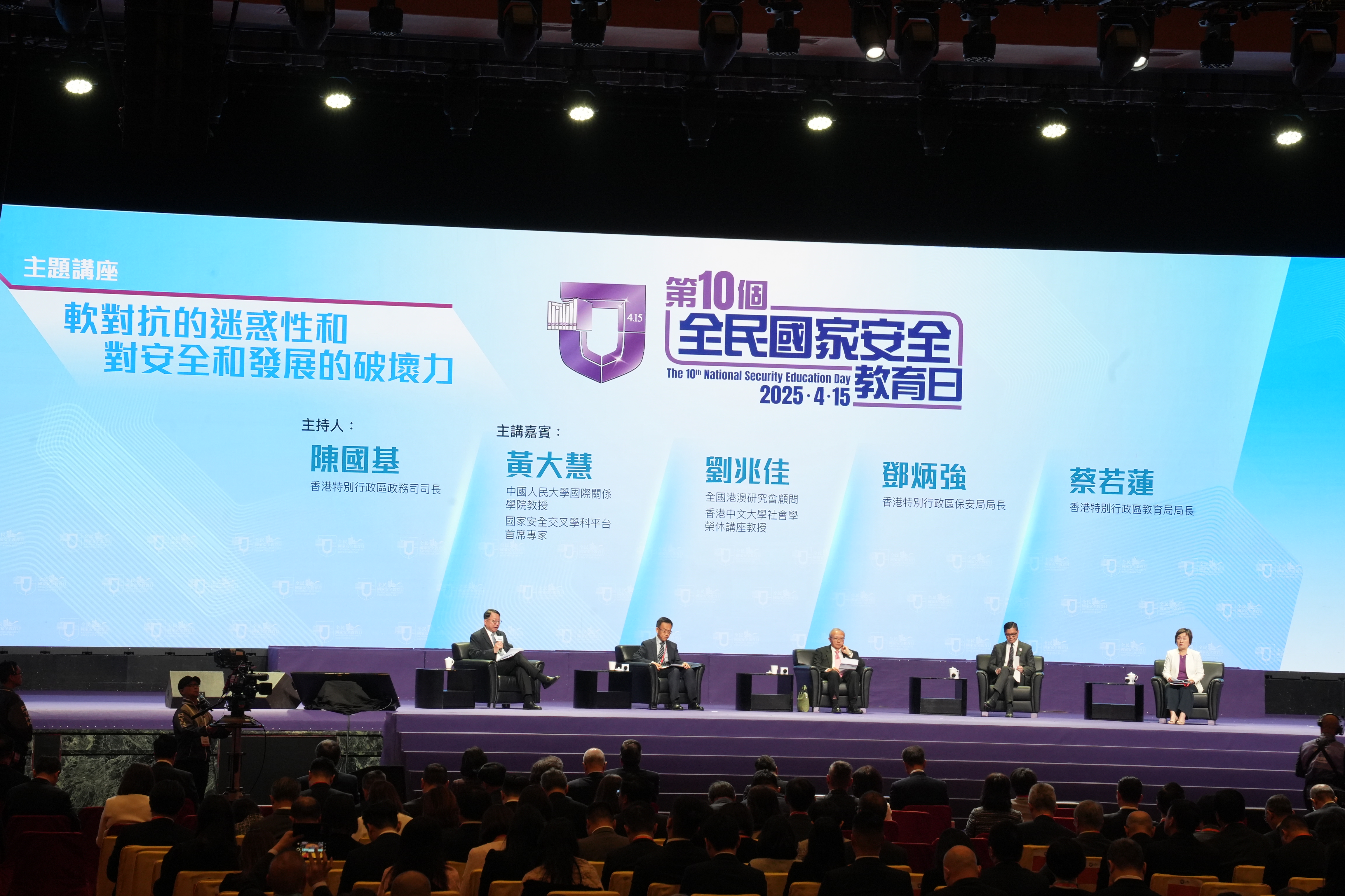 (大公文匯全媒體 記者 陳子萌)今日(15日)是第10個「全民國家安全教育日」,一場以「軟對抗的迷惑性和對安全和發展的破壞力」為主題的講座於會展展開。講座由政務司司長陳國基主持,多位嘉賓強調,「軟對抗」破壞國家安全,阻礙香港繁榮穩定,香港應健全國家法律體系,增強市民國安認知。
