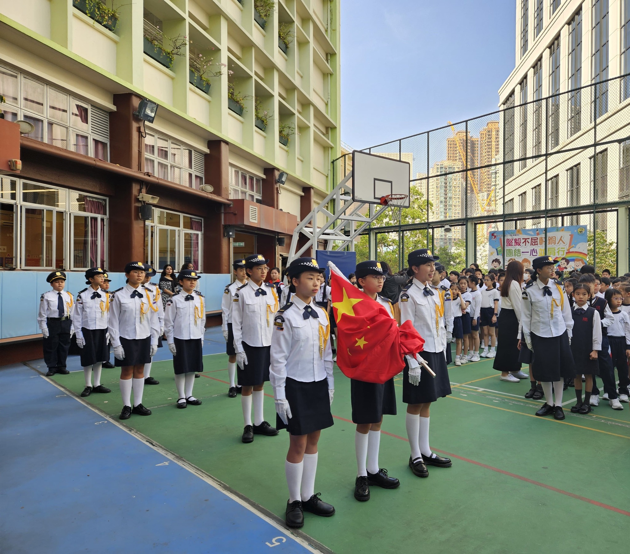 學生升旗手黃沛言在接受採訪時表示,對能夠代表學校參與升旗禮感到很自豪,平時一個星期有三日都會進行升旗訓練,有時要烈日當空下練習步操,難免會覺得辛苦,但過程中訓練毅力,能克服這些困難。