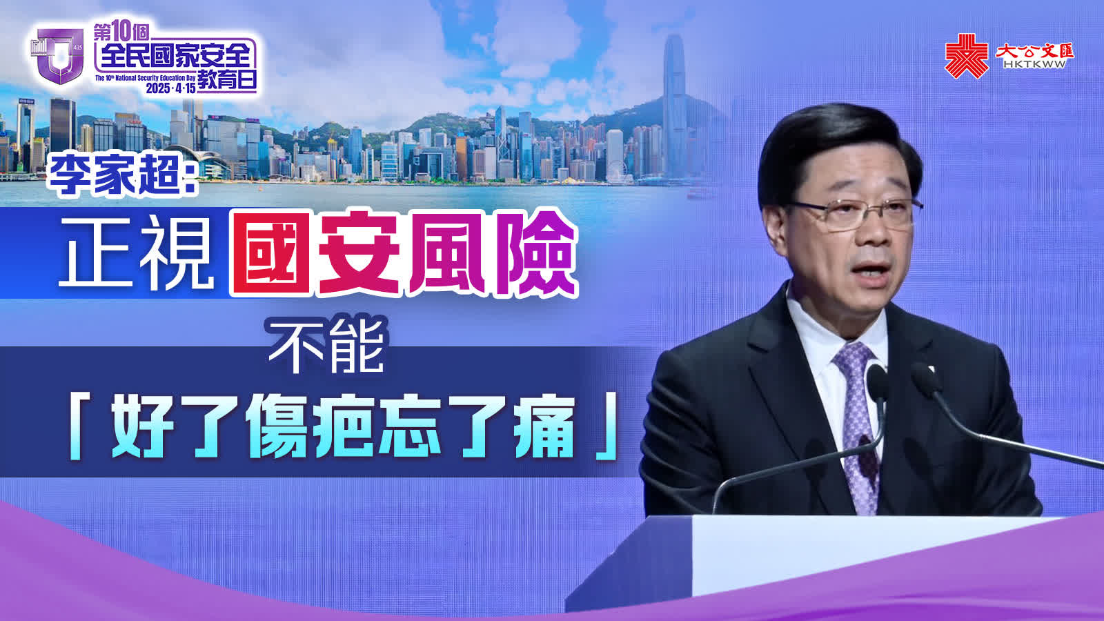 (大公報記者 義昊)行政長官、特區維護國家安全委員會主席李家超昨日在「全民國家安全教育日」活動開幕禮上致辭表示,夏主任的主旨講話讓我們牢記要前事不忘,正視和警惕國家安全風險,並更加堅定地維護國家安全和香港的繁榮穩定。香港經歷了「黑暴」、港版「顏色革命」的慘痛,至今仍驚恐難忘。香港國安法公布實施五年以來,社會穩定了,市民生活正常了,但不能「好了傷疤忘了痛」。他批評美國所謂對等關稅示範了美國霸權自居的真面目,重申香港會保持基本零關稅的自由港地位,奉行開放自由貿易。