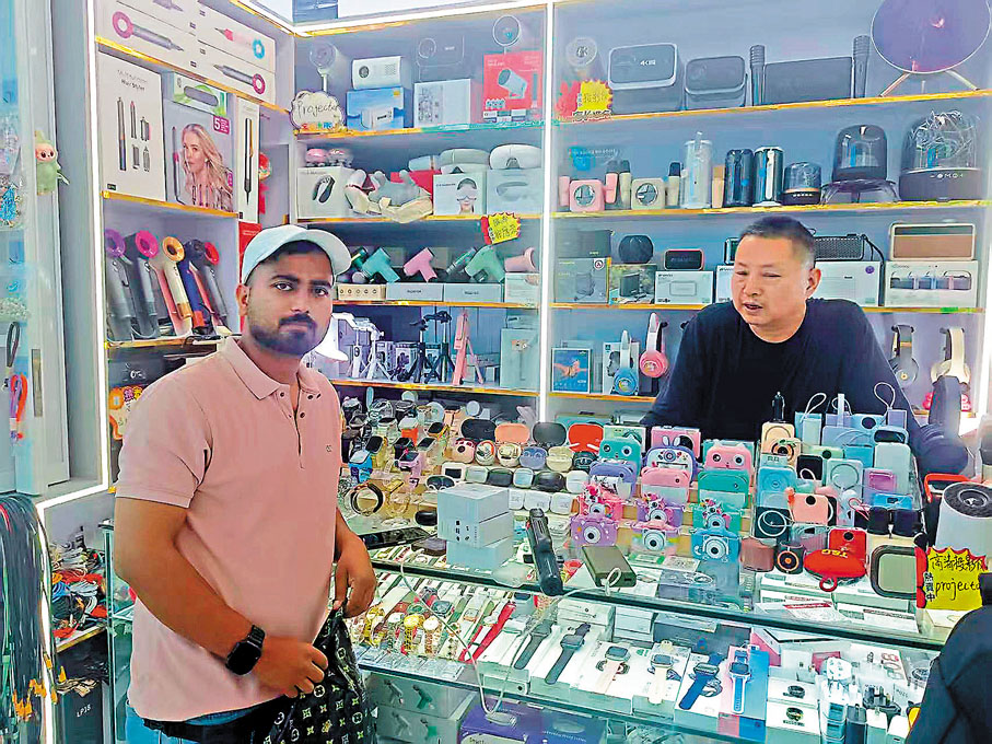 另一邊廂,來自阿爾及利亞的多位商人前來一商城購買風筒和其他電子產品,其中一個懂中文的商人與一商戶討價還價,最終商戶降價一兩成銷售了十多件商品。