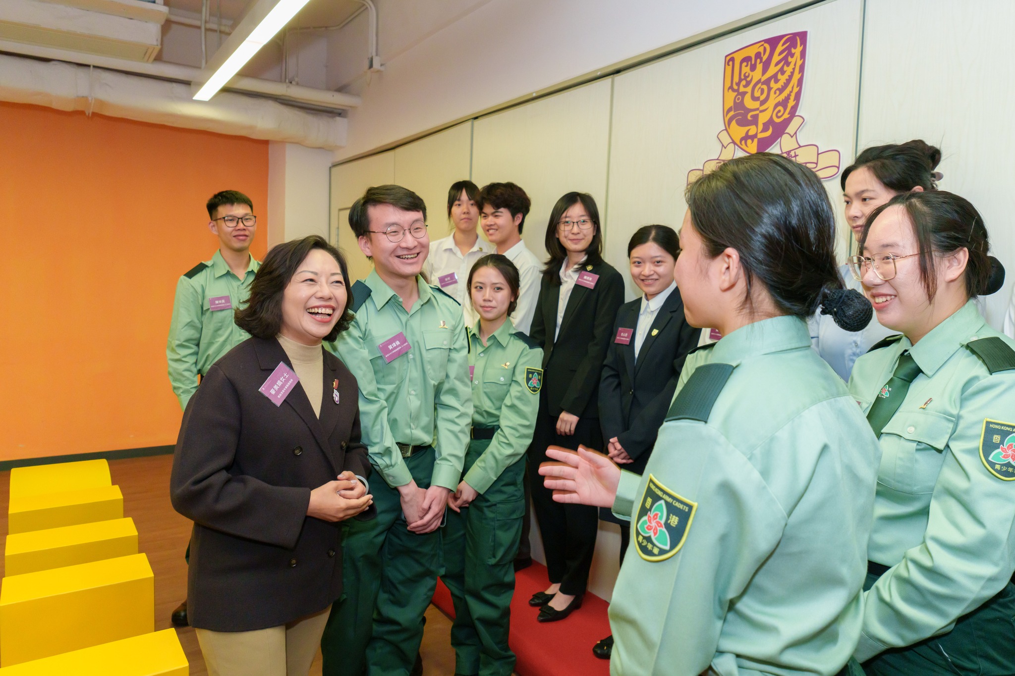 香港中文大學國旗護衛隊於2023年成立,是香港青少年軍總會於本地大學的一支分隊。隊員與麥美娟分享了加入國旗護衛隊後的收穫及代表中大參加升國旗比賽的感受。隊員們表示,在參與國旗護衛隊訓練的過程中,除收穫了團隊精神和歸屬感外,還加強了自身對國民身份的認同感。