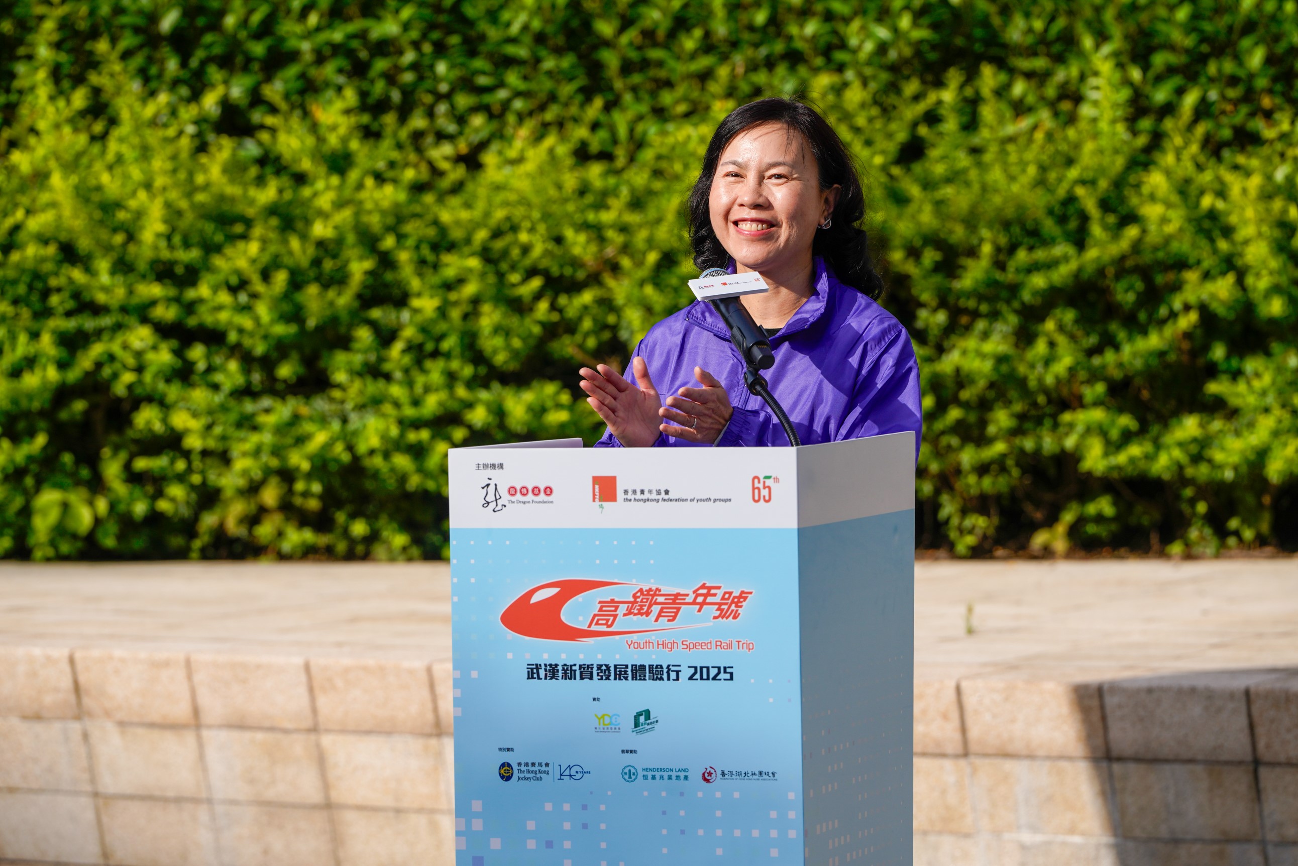 大公文匯全媒體報道,龍傳基金及青年協會合辦「高鐵青年號——武漢新質發展體驗行」活動,安排300位本地中學生乘坐高鐵,到湖北武漢展開4日3夜的「新質生產力」探索行程。運輸及物流局局長陳美寶今日(16日)早上出席出發禮並致辭。