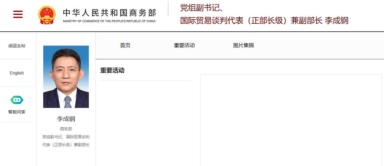 另據國家發展和改革委員會官網4月1日消息,國家發展改革委主任鄭柵潔於3月31日主持召開企業家座談會,與寧德時代、福耀玻璃、立達信光電子、廈門國貿等8家企業座談交流,聽取意見建議,回應企業關切。國家發展改革委副主任鄭備、工業和信息化部副部長辛國斌、商務部部領導李成鋼、稅務總局副局長王道樹、市場監管總局副局長鄧志勇、國家知識產權局局長申長雨、國家能源局局長王宏志出席會議。上述信息顯示,2025年3月李成鋼已任商務部部領導。