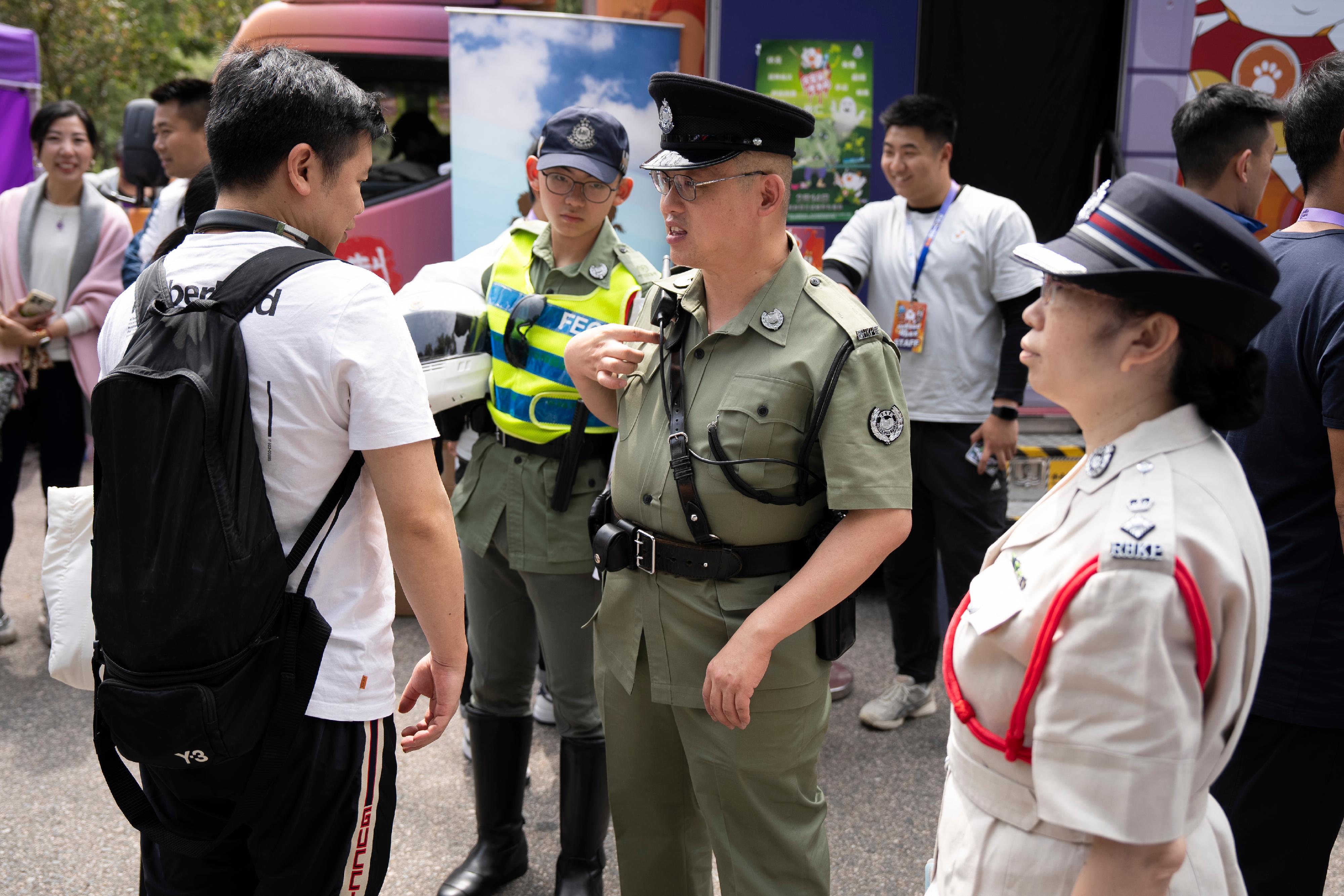 此外,身穿不同年代警察制服的人員在場與市民合照,展示警隊制服的演變;退休警務及文職人員為市民提供展覽導賞,配合互動科技元素,以生動有趣的方式讓市民更全面地認識警隊歷史。開放日還設有「無人機足球」體驗、禁毒宣傳車及多個「打卡」位供市民拍照留念,與眾同樂。