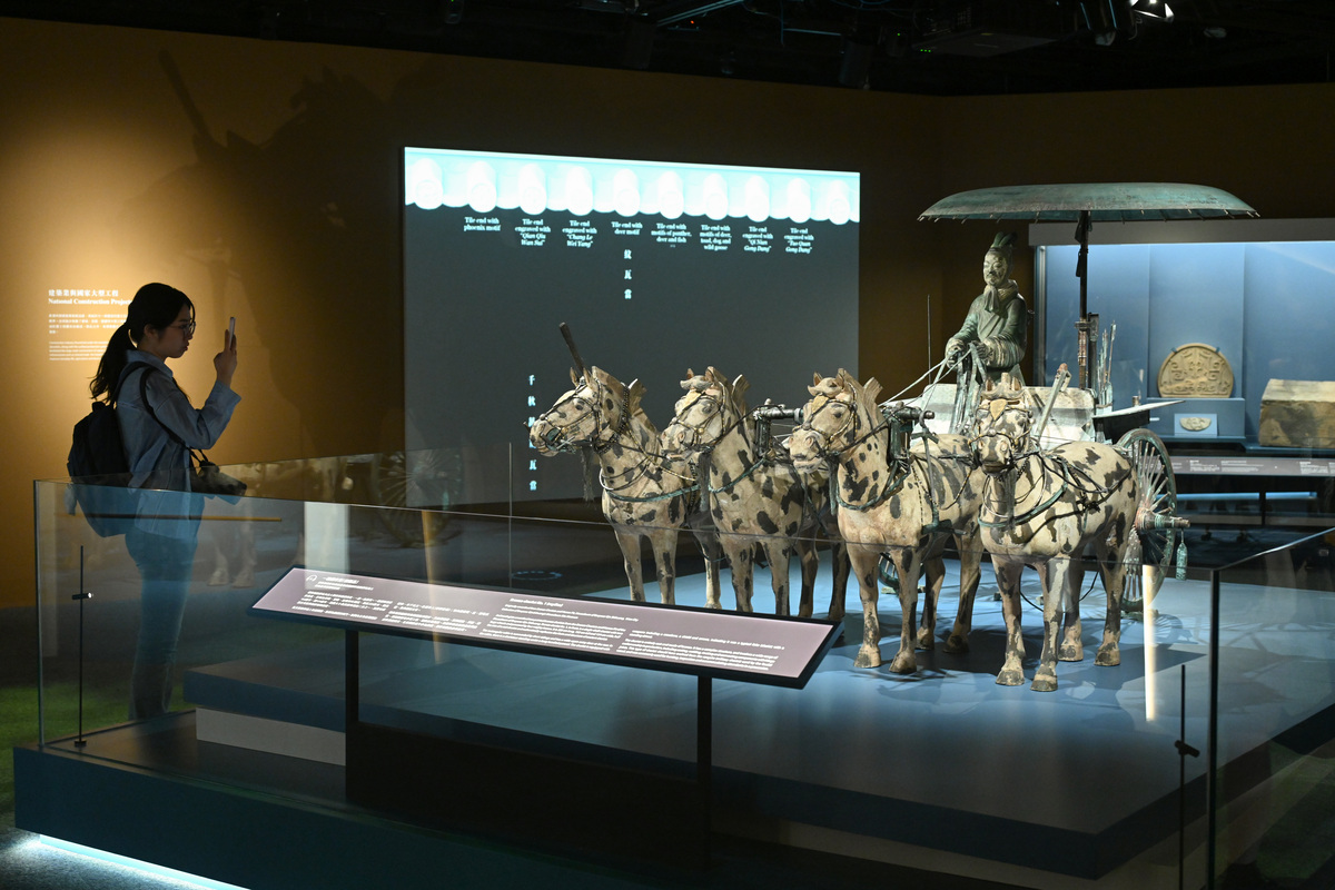 另一亮點展品是一號銅車馬,為全場唯一複製品,也是展覽中最大型的開放式展品。原件於陝西省西安市秦始皇帝陵園銅車馬陪葬坑出土,真實地模擬古代馬車的形制和結構。其他展品包括秦代的銅雁、漢代的陶錢範、金餅、着衣式行走武士俑等。