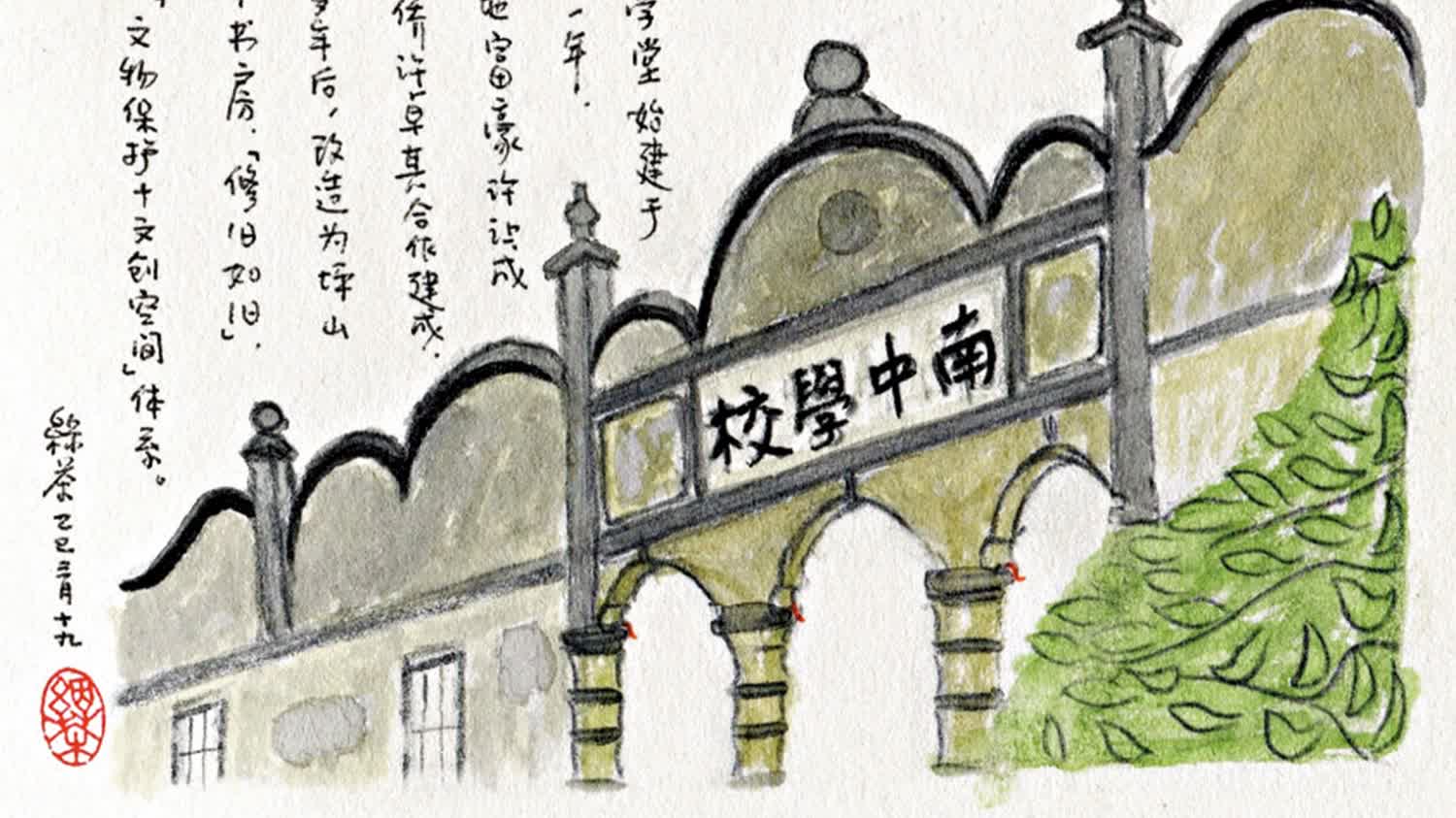 八十多年後,二○一八年四月二十三日,南中學堂正式改造為坪山城市書房。學堂地處交通要道,建築所在現為環島,車流繞行學堂,鬧中取靜。白牆黑瓦、飛檐雕柱,其南洋風格與傳統客家建築元素相互交融,在改造過程中,「修舊如舊」,保留了原有中西合璧的建築風貌。