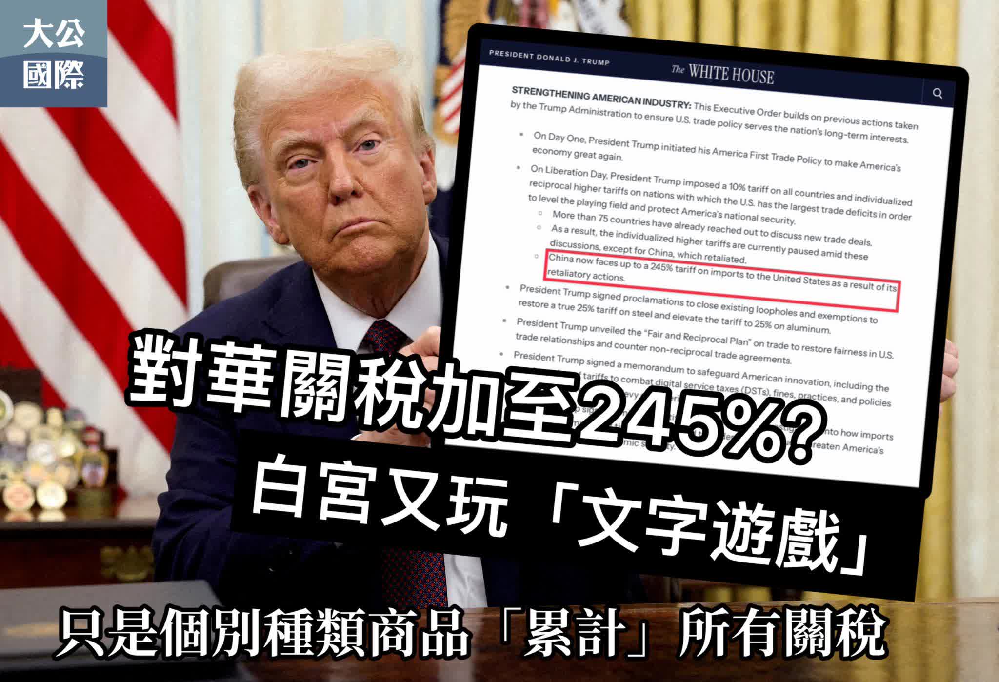 美國特朗普政府將對華關稅加徵至245%,並圖謀以高關稅要挾其他國家在中美之間「選邊站」,不排除未來會有更瘋狂的舉動。