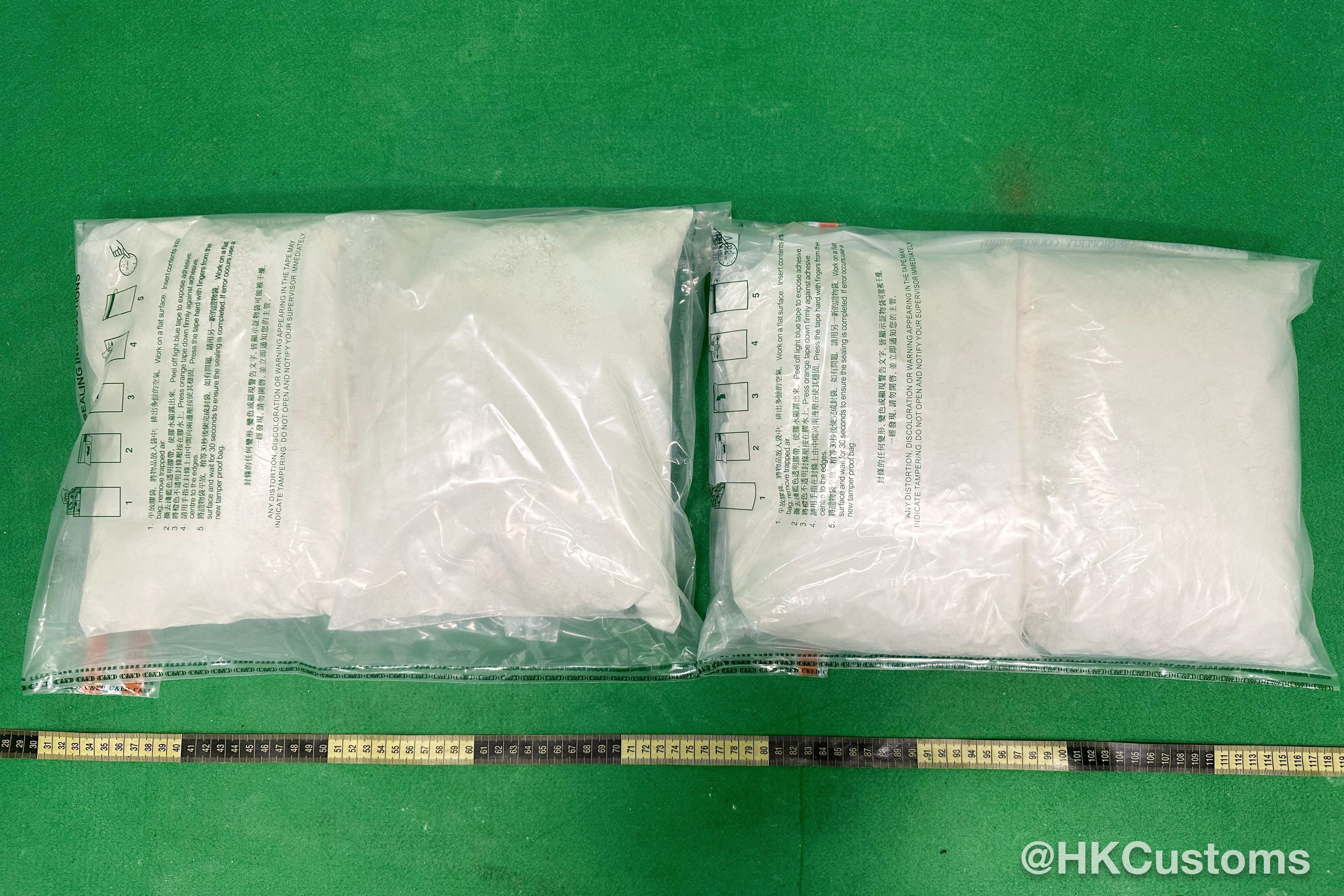 香港海關4月12日在香港國際機場破獲兩宗涉及旅客販運毒品的案件,檢獲共約十二公斤懷疑氯胺酮及約七公斤懷疑可卡因,估計市值共約1190萬元。