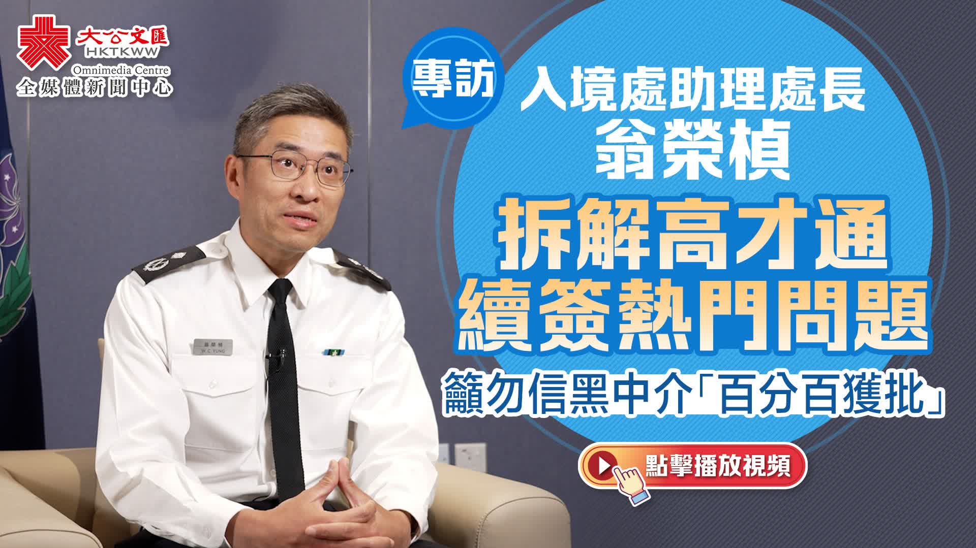 (大公文匯全媒體 記者 盧葦、梁譯尹、蘇婷)為將香港打造為國際高端人才集聚高地,本港推出多項措施搶人才。其中,2022年年底推出的「高端人才通行證計劃(高才通)」,隨着計劃實行滿兩年,不少「高才」需要進行續簽,然而有不少人反饋在續簽時遇到困難,如只獲批兩個半月等。有「苦主」透過社交平台批評特區政府違反承諾,臨時更改續簽條款。對此,入境事務處助理處長(簽證及政策)翁榮楨日前接受大公文匯全媒體中心、點新聞獨家訪問時表示,部分高才通持有人獲續簽時間較短的情況的確存在,處方會根據僱傭合約期限或開展業務等條件,作出適當決定。但他亦強調,入境處一直採取開放和務實的吸引人才政策,配合特區政府「搶人才」、「用人才」、「留人才」的大方向。