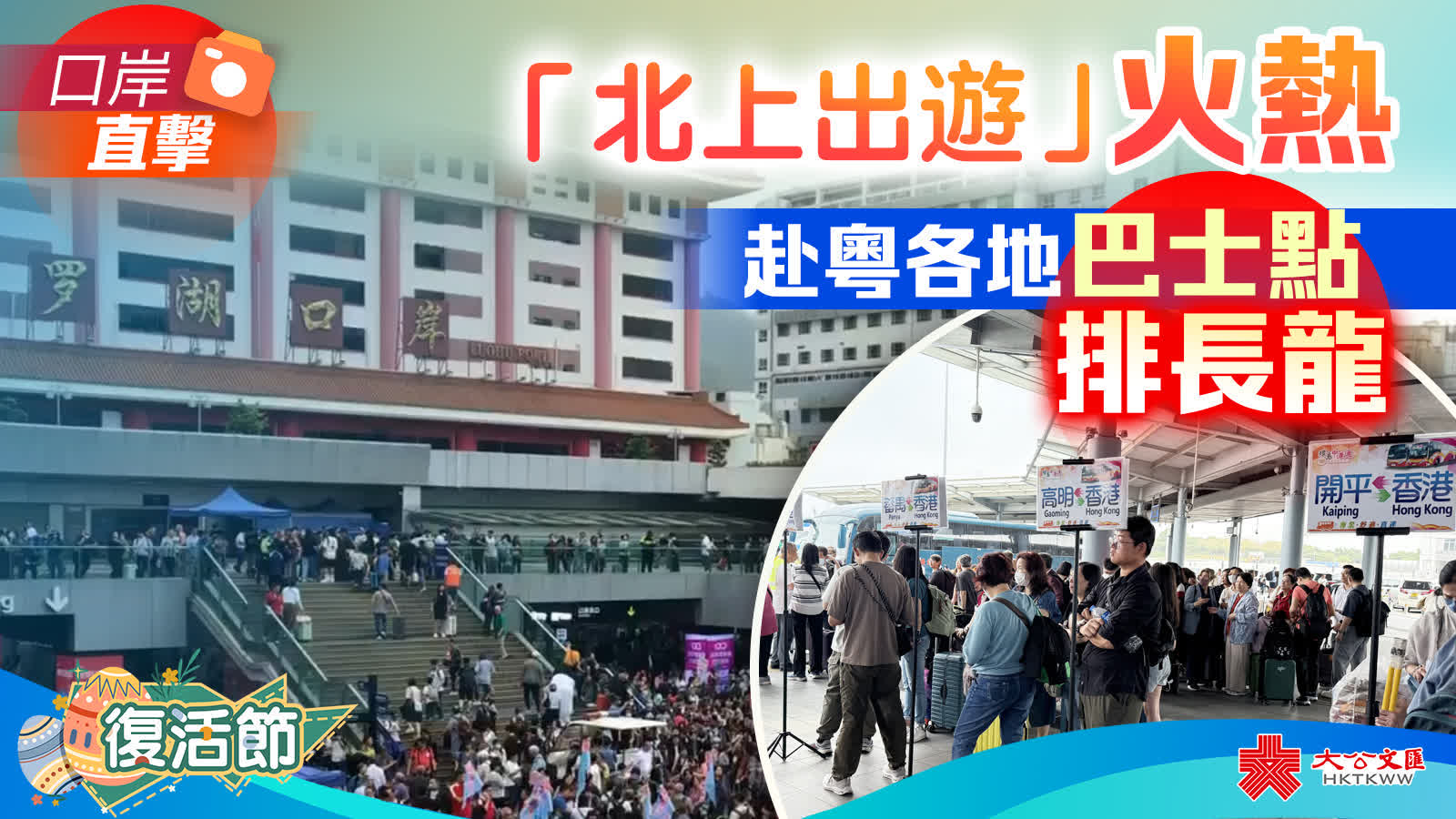 大公文匯全媒體現場直擊。一連四日的復活節長假今日(18日)開始,大量港人北上出遊享受假期。大公文匯全媒體記者在深圳灣口岸看到,口岸人潮洶湧,港深兩邊口岸都增開了大量閘機,通關大致順暢。早上8時許,從口岸香港側到深圳側大約用時25分鐘左右。入境深圳後,赴廣東省內各城市的巴士站點都大排長龍。點擊閲讀詳情