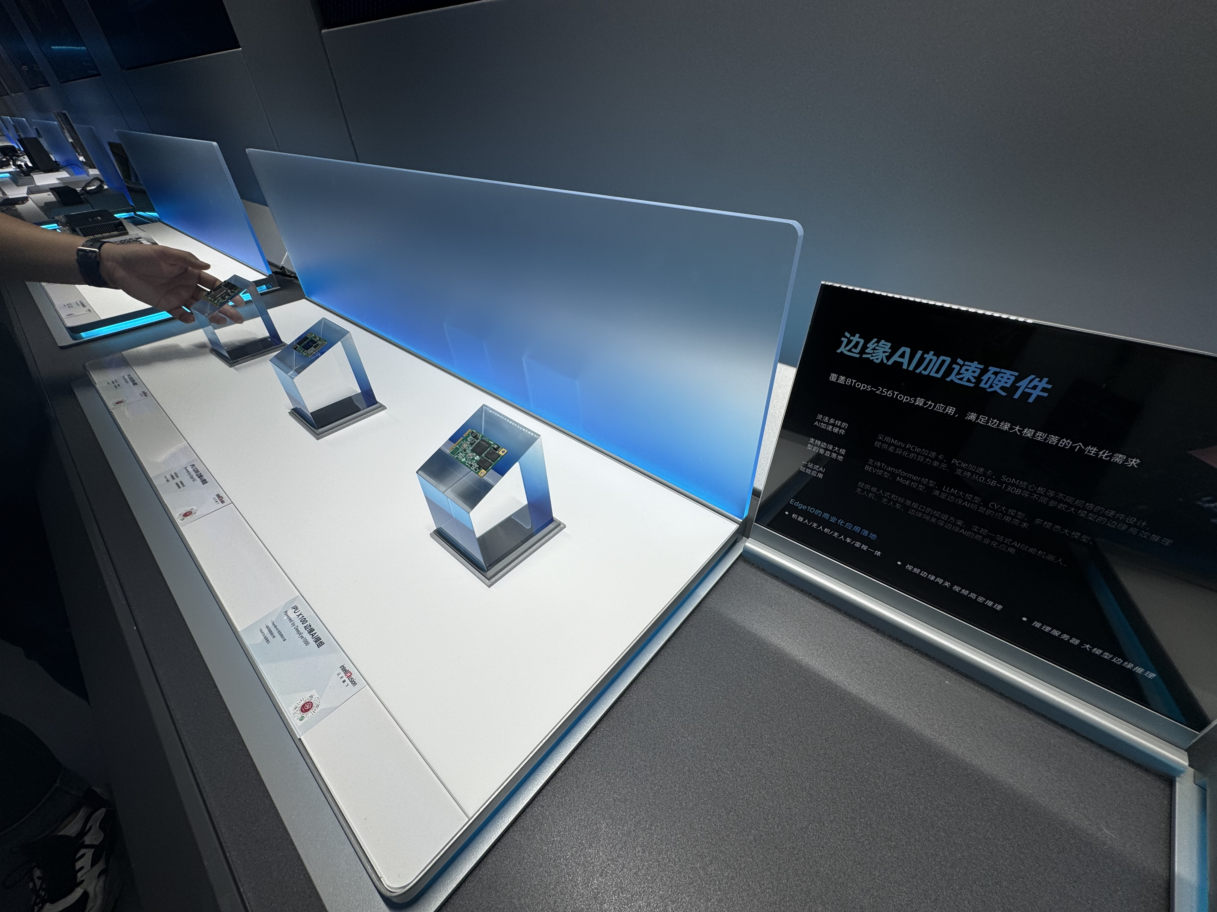 (大公文匯網記者 盧靜怡 3深圳報道)17日,「同心築夢・共謀發展」 粵港澳媒體灣區行第三場聯合採訪活動採訪團走進深圳雲天勵飛技術股份有限公司。展廳內展示着從指甲蓋大小的「算力積木」邊緣AI芯片,到半面牆大小的邊緣AI芯片推理一體機,現場還有一整個巨大的機房。雲天勵飛是一家擁有算法、芯片和大數據研發生產能力的AI科企業。雲天勵飛董事、高級副總裁、CFO兼董秘鄧浩然告訴記者,隨着AI的火爆,公司去年的業務營收增長超過60%。「業績增長主要來自兩大板塊,一是我們自主研發的芯片和加速卡形成的算力產品。第二部分是大量的智能硬件,包括智能眼鏡、智能耳機等。」