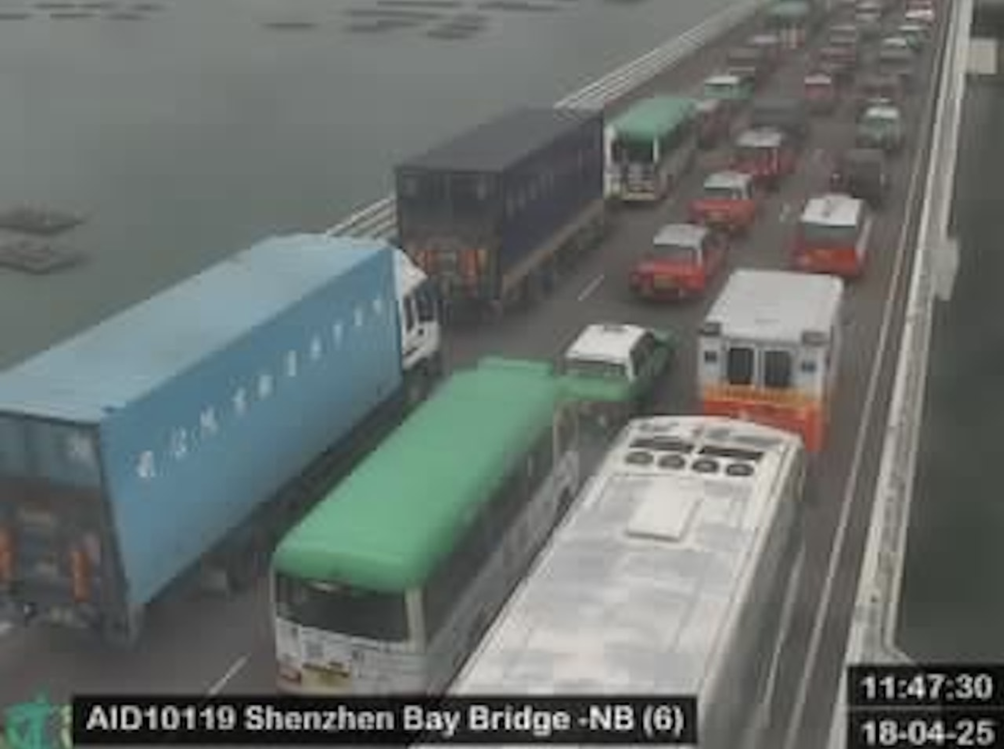 根據「香港出行易」網上實時監測系統畫面可見,最新於早上11時47分,橋面出現嚴重擠塞,大部分是前往深圳灣管制站的的士。