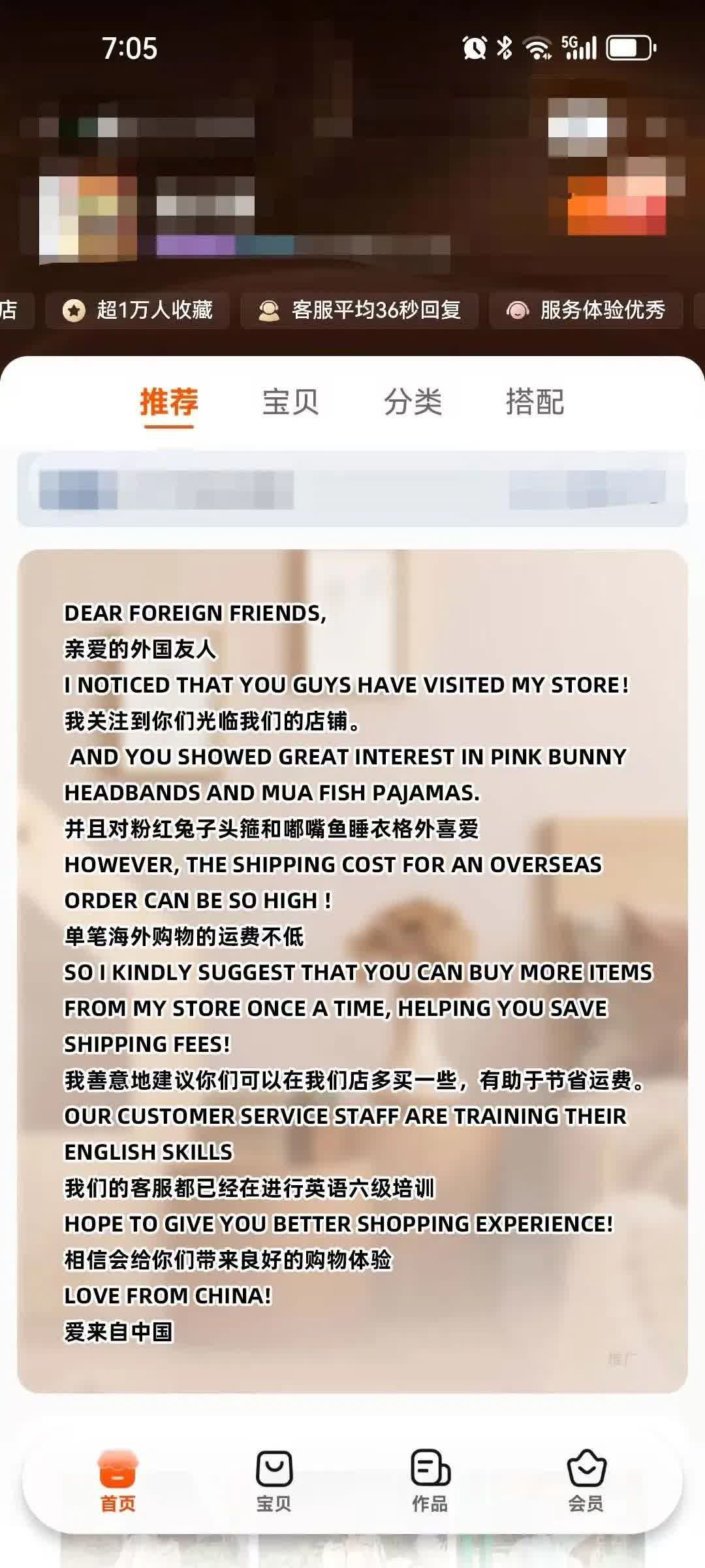 陳巧智是淘寶女裝店「神狼大碼」的創始人。他告訴記者,從4月12日開始,客服團隊每天都會接到十幾個「一看就不是中國人」的旺旺問詢消息:「有些一看就是用翻譯軟件翻譯的中文,有些乾脆就是英語,我去看了訂單,發現這幾天店舖的海外流量也在暴漲。」除了緊急培訓客服英語之外,有的店舖甚至還直接掛出中英文公告:「歡迎全球人光臨我們的小店」。