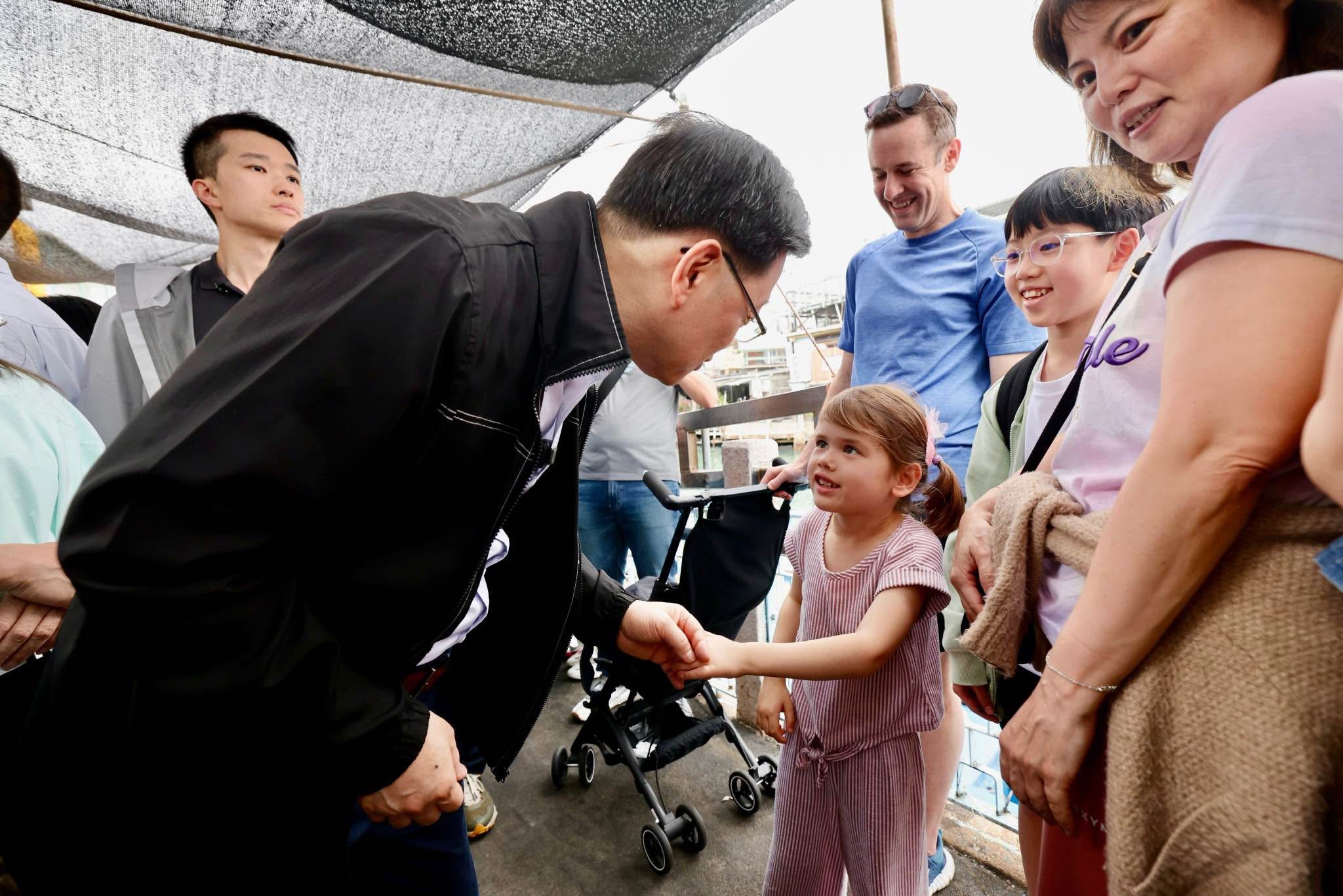 下船後,李家超在村內漫遊,感受古樸漁村風情,他在餅店外遇到廣州遊客程小姐,鼓勵她帶更多朋友來遊覽和多消費,程小姐說是看到小紅書推薦,專程來大澳觀光,微雨中更感受到大澳的朦朧美。