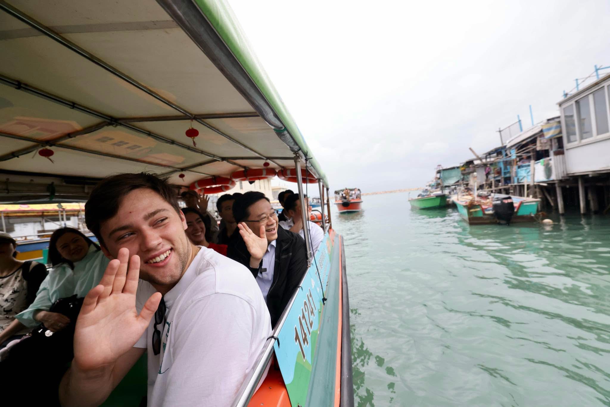 李家超於復活節假期第一日上午抵達大澳,先與羅淑佩乘船觀賞依着河道兩岸搭建、縱橫交錯的棚屋和周邊景致,並與船上的外籍留學生聊天。被問及香港和其他地方大城市有何不同之處,德國留學生表示更喜歡香港,並稱自己的目標是以後回香港發展事業。