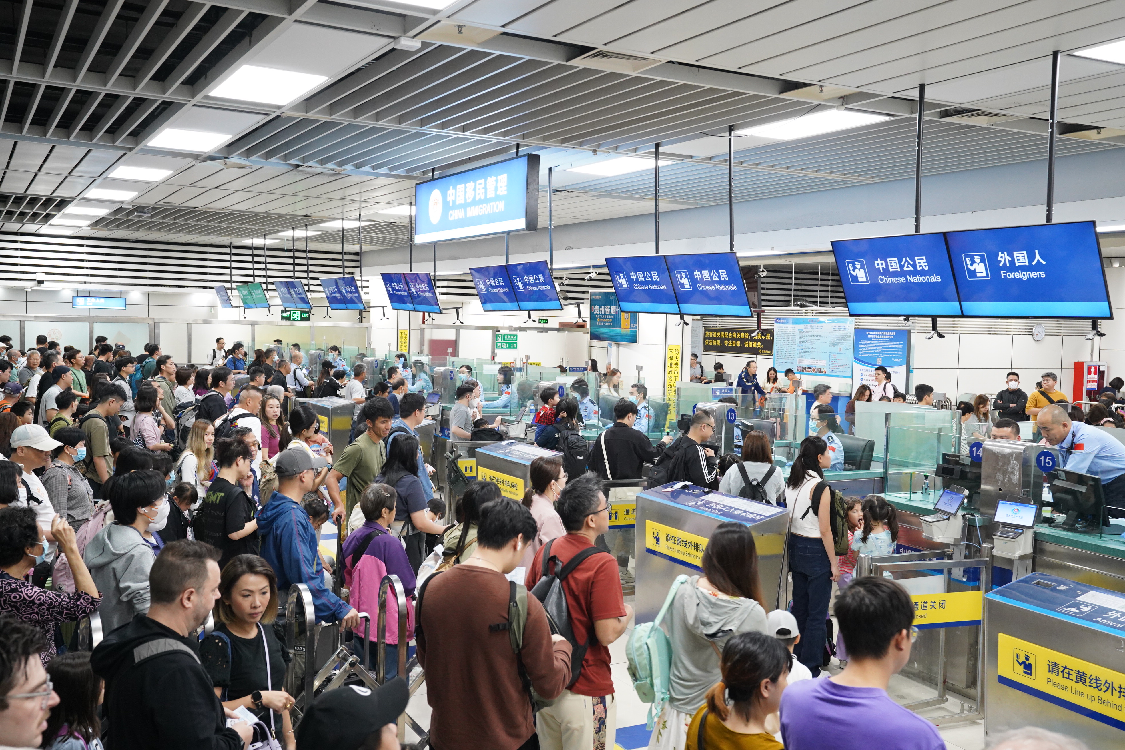為高效保障口岸通關順暢,深圳灣邊檢站開足查驗通道,根據現場客流情況動態調整通道類型,在客流高峰時段,增設快捷通道人工查驗功能,提高查驗效率,確保客流高峰時段迅速削峰,並根據需要採取限流措施,維護好口岸秩序;對「老、弱、病、殘、孕」等旅客及時開通「綠色通道」,最大限度提升旅客通關體驗;並加強與香港入境事務處、跨境巴士公司、港鐵和交通部門的溝通聯絡,提升同頻保障安全高效通關合力。