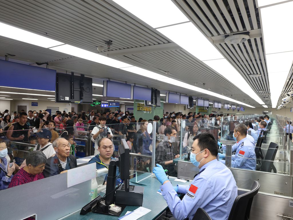 為應對跨境客流新態勢,羅湖邊檢站創新實施「分區驗放、動態分流」查驗機制,在客流高峰時段打開全部查驗通道,增加手持PDA智能查驗,提高通關效能。結合大數據分析、客流實時監控等措施,全面實現客流變化精準預測、疏導措施無縫銜接、突發情況秒級響應,通過智能預檢系統實現旅行團與散客的分流管控,營造安全、順暢的通關環境。
