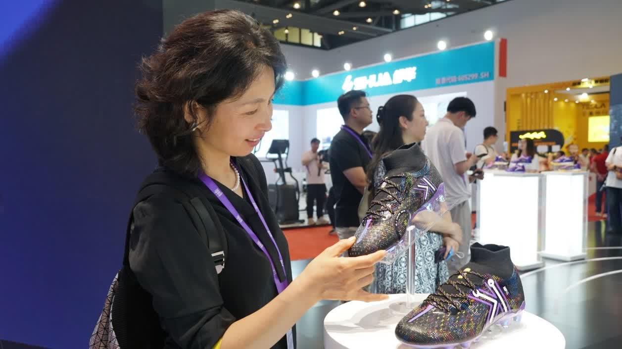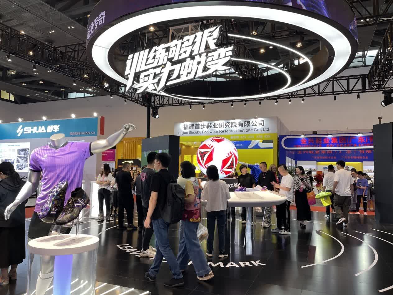 會展中心「鞋材輔料館」內,石墨烯智能溫控面料等尖端材料被外商團團圍住;在「鞋機館」,全自動針車、3D打印、AI建模等「未來工廠」技術在現場演繹高效生產;「成品鞋與體育用品館」匯聚了安踏、特步、卡爾美、舒華等本土品牌,不時有外商現場洽商合作。