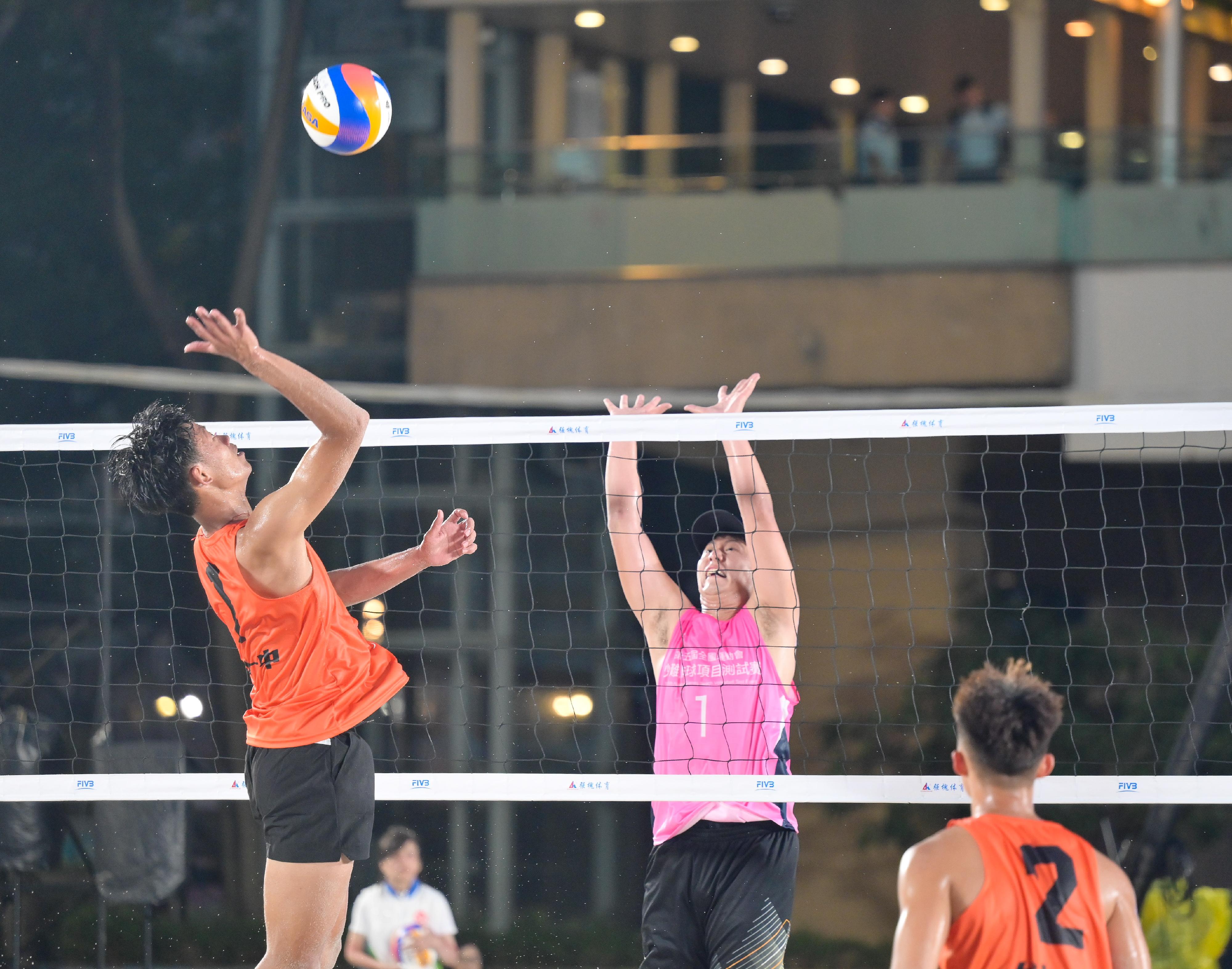 3日的測試賽分別有9隊男子隊伍和8隊女子隊伍參加,測試賽的內容包括賽事運行流程、信息系統、醫療服務、安保、廣播安排、體育展示及頒獎流程和義工服務等。3日賽事共有約1300名全運義工參與;當中約170位義工在賽事期間每日當值提供場地賽事服務,包括主場及副場場地的平沙、撿球、翻分牌等工作。他們均已接受相關培訓。