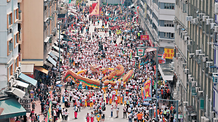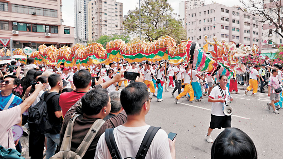 (香港文匯報記者 洪澤楷)昨日是農曆三月廿三日天后誕,全港多區都有慶祝活動,當中以元朗舉行的十八鄉「天后寶誕會景巡遊」規模最大。會景巡遊於疫情間一度停辦,去年是疫後首次復辦,今年規模進一步擴大,多達37支表演隊伍由元朗市中心出發,巡遊至大樹下天后古廟。香港文匯報記者於現場直擊,上午10時市中心已人頭湧湧,大批市民與旅客在巡遊道路兩旁駐足觀賞。有沿途的餐廳表示,受北上消費與海外旅遊影響,復活節假期首數天的生意減少,不過,昨日人流明顯增多,生意比平日增長約20%。有首次參與巡遊的馬來西亞旅客盛讚香港包容中西新舊等不同文化。