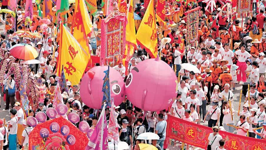 元朗十八鄉自1963年起舉辦「天后寶誕會景巡遊」,活動更於2021年被列入國家級非物質文化遺產代表性項目。「大家準備,起!」一聲令下,盤踞在路中央的大龍騰空而起,這是會景巡遊的重要一幕。今年共有37支來自元朗各鄉村的花炮隊及表演隊伍參與巡演,獻上舞龍、舞獅、舞麒麟及英歌舞等表演,警方亦派出吉祥物「提子」及花炮宣傳防騙資訊