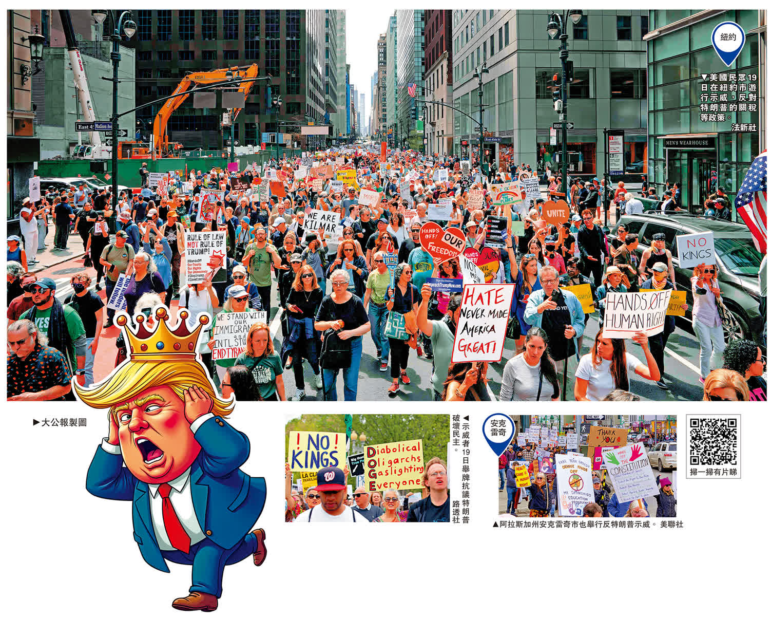 大公報綜合報道,美國總統特朗普濫徵關稅,擾亂國際貿易秩序,多國政府出手反制,國際組織和經濟專家紛紛抨擊特朗普的政策損人害己,美國國內亦抗議不斷。點擊閲讀詳情