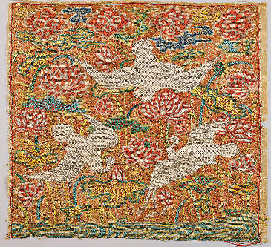 所謂補子又叫胸背,在明、清兩代較為流行,用於官服上展示官員等級和身份,一般呈方形,但也有圓的。此外,賀祈思的收藏還包括大量與絲綢之路相關的紡織品,其中有很多「現在看起來都不覺得很『中國』的紋樣,在8世紀甚至更早就有了」。