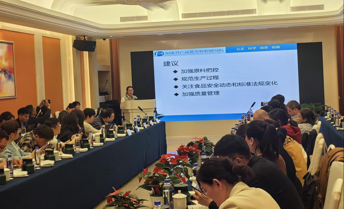 現場,中國堅果果乾食品展覽會組委會翁洋洋致歡迎詞,對來自各地檢測機構和行業的專家表示歡迎和感謝。她強調,加強原料把控與儲存、規範生產過程、關注標準變化、加強質量管理是企業適應市場變化的必由之路。她希望與會企業人員認真學習,並預祝會議圓滿成功。國家加工食品質量檢驗檢測中心(福州)劉文菁詳細剖析了2022—2024年堅果與籽類食品的抽檢結果,並提出了食品質量安全風險防控建議。