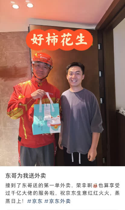 大公文匯網報道,京東集團創始人劉強東今日(21日)在社交媒體上引發熱議。他被網友拍到親自體驗外賣配送工作,身穿京東外賣制服,並與顧客親切合影。該消費者還配文表示,「接到了東哥送的第一單外賣,榮幸啊,也算享受過千億大佬的服務啦,祝京東生意紅紅火火,蒸蒸日上!」