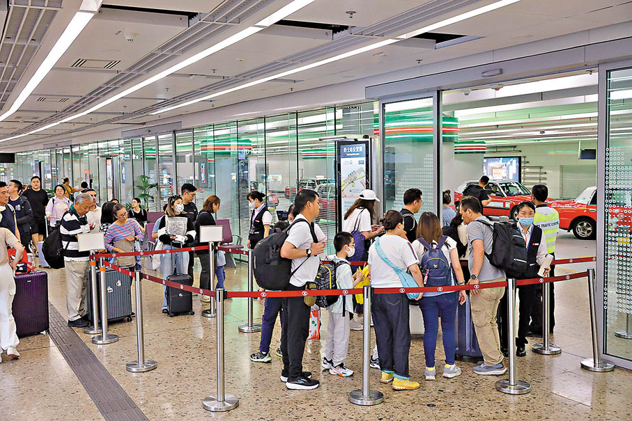 (香港文匯報記者 張茗)一連4天復活節小長假昨日結束,大批外遊港人收拾度假心情回港。連同上周四假期前夕,至前天累計有222萬人次香港居民曾離境,而多個口岸均迎來入境高峰,其中西九龍高鐵站、機場、深圳灣、羅湖、香園圍等口岸均人山人海。香港特區政府入境處表示,昨日截至晚上9時共有逾63.1萬人次循各口岸入境,當中逾54.1萬人次為香港居民,並以羅湖口岸最為繁忙。香港文匯報記者昨日下午到西九龍高鐵站直擊,拿着大小行李的人潮不斷湧現,站內不停有關於乘車建議提示的廣播。有市民表示,趁數天復活節假期前往內地探親順便回鄉祭祖,並帶回不少當地特產作手信,滿載而歸,又讚揚兩地口岸效率高,過關快速。