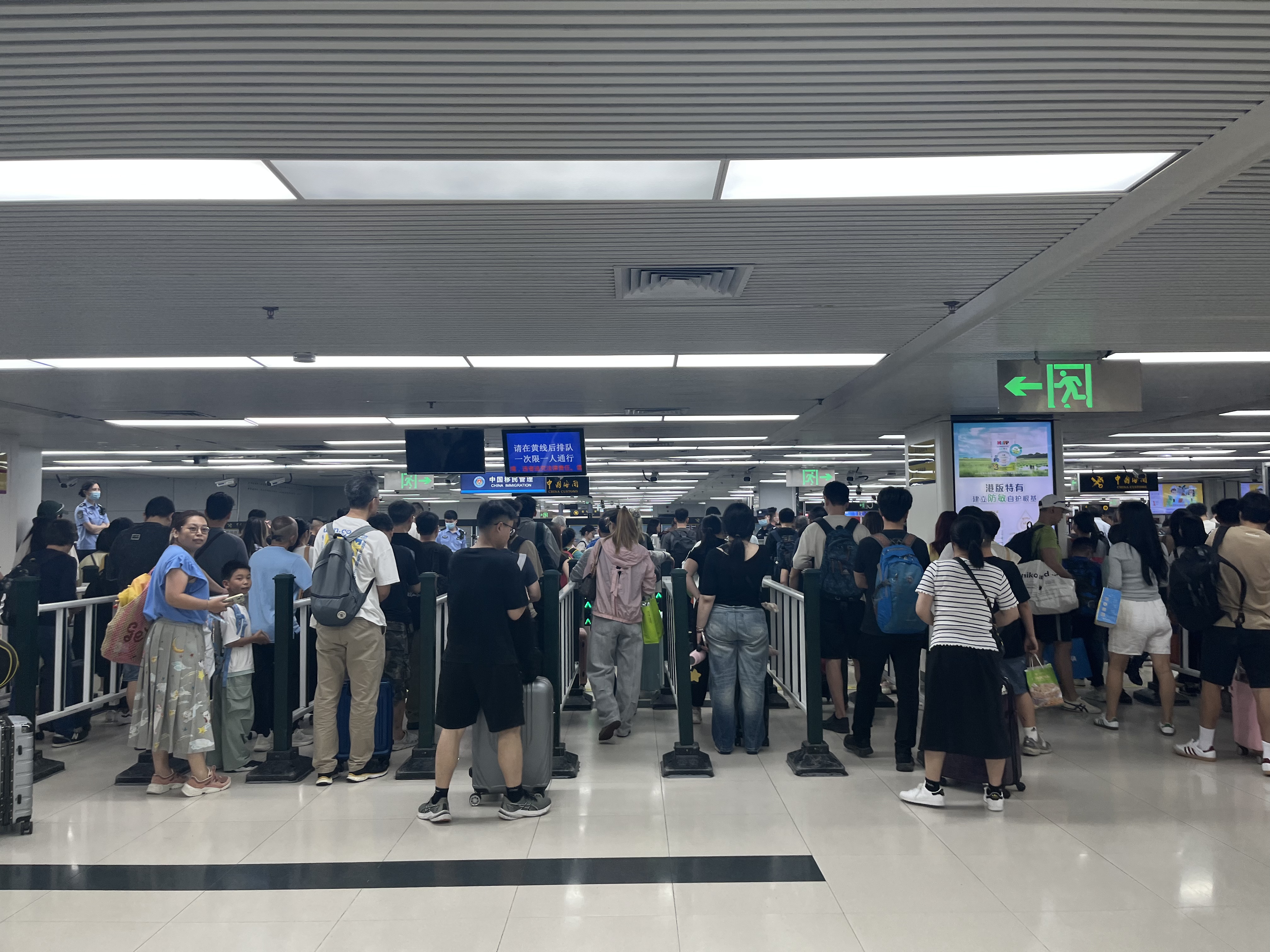由上周四(17日)至周一(21日),5日累計246.6萬人次香港居民離境,當中至少184.3萬人、約75%經各個口岸北上到內地;累計228.1萬人次入境。