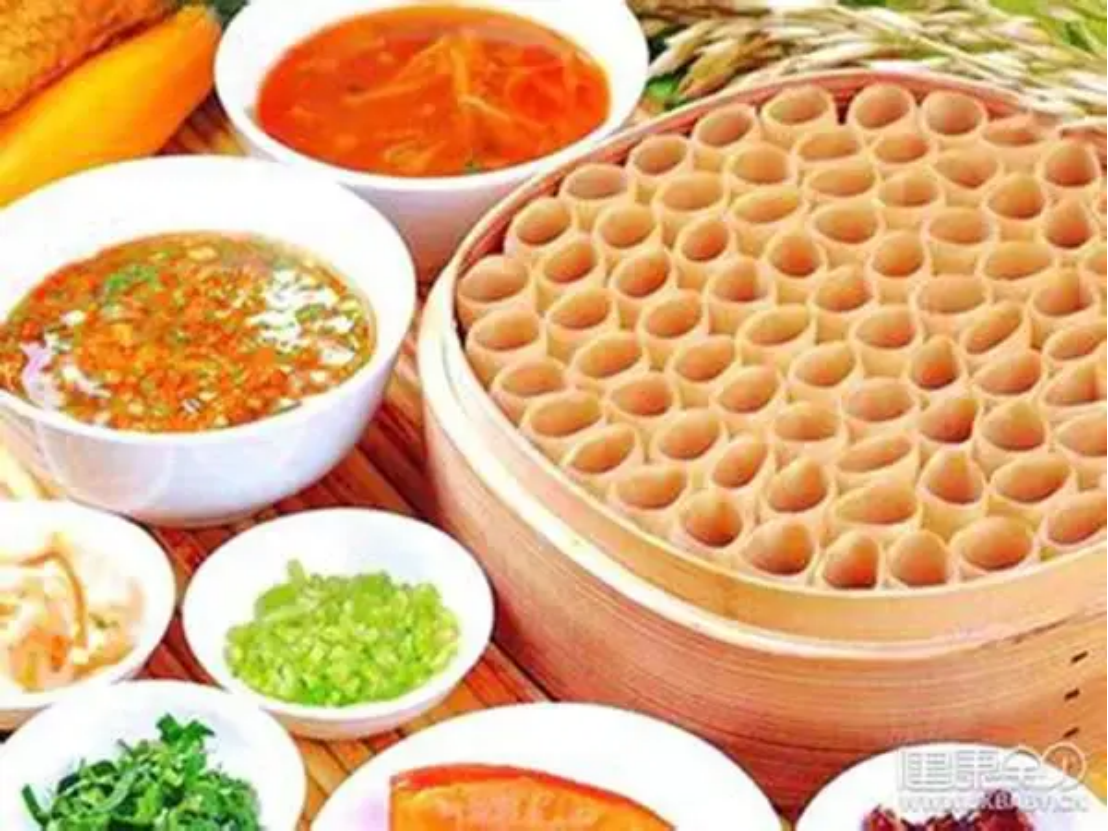 莜麥是忻州地區主要糧食作物之一,河曲人偏愛一種叫莜麵窩窩的主食,其做法是將莜麵加一倍開水或冷水和制,做成如「貓耳朵」似的筒狀面片,長寸許,薄如葉,色淡黃。做好後,挨個站立,並排在籠內,酷似蜂窩。除了山西,這種美食同樣流行於內蒙古、河北等地。莜麵剛熟時即香味撲鼻,配以羊肉或蘑菇湯,香醇異常,令人回味無窮。