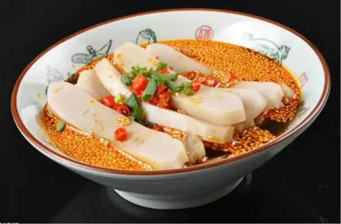 還有路邊常見的小吃蕎面碗托,蕎麥去皮後成為糝子,將糝子於前一日用水泡軟,拳揣成糊狀,細濾後舀入碗內上籠蒸,中途用筷攪攔一次,蒸熟即成。評判碗托做得好賴的標準不要光看其外形,最重要的一點是嘗其蘸湯好不好吃,用河曲話來說就是「有沒有味」。碗托做得好的人,只簡單地把醋、姜、芝麻、辣椒、蒜泥、香油等配成蘸湯,澆入切好或者擦好的碗托里,馬上就酸香撲鼻,讓人食指大動。