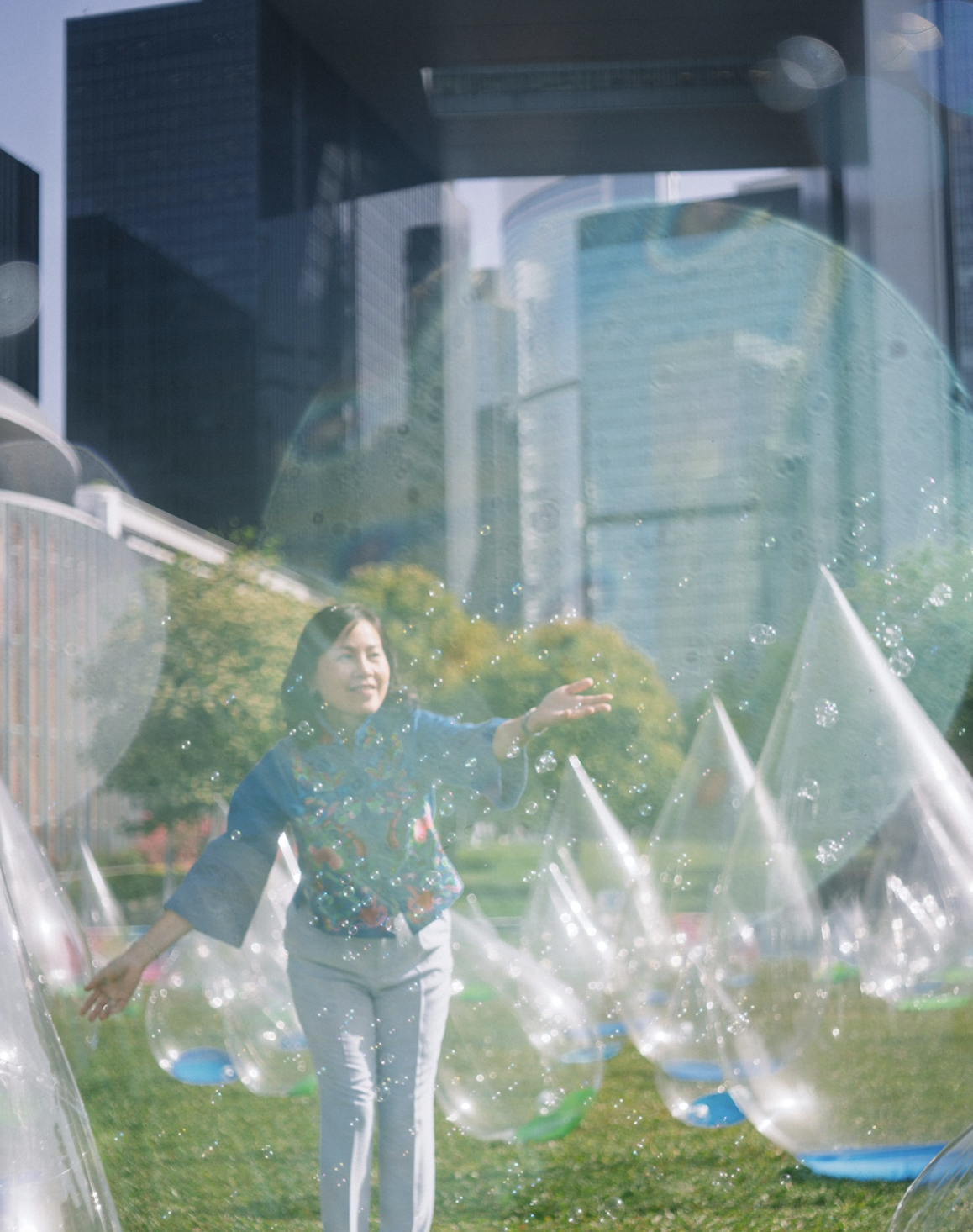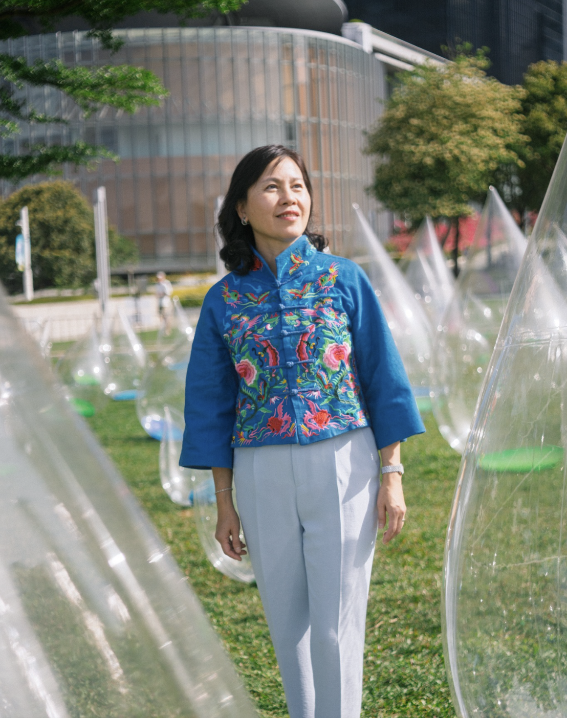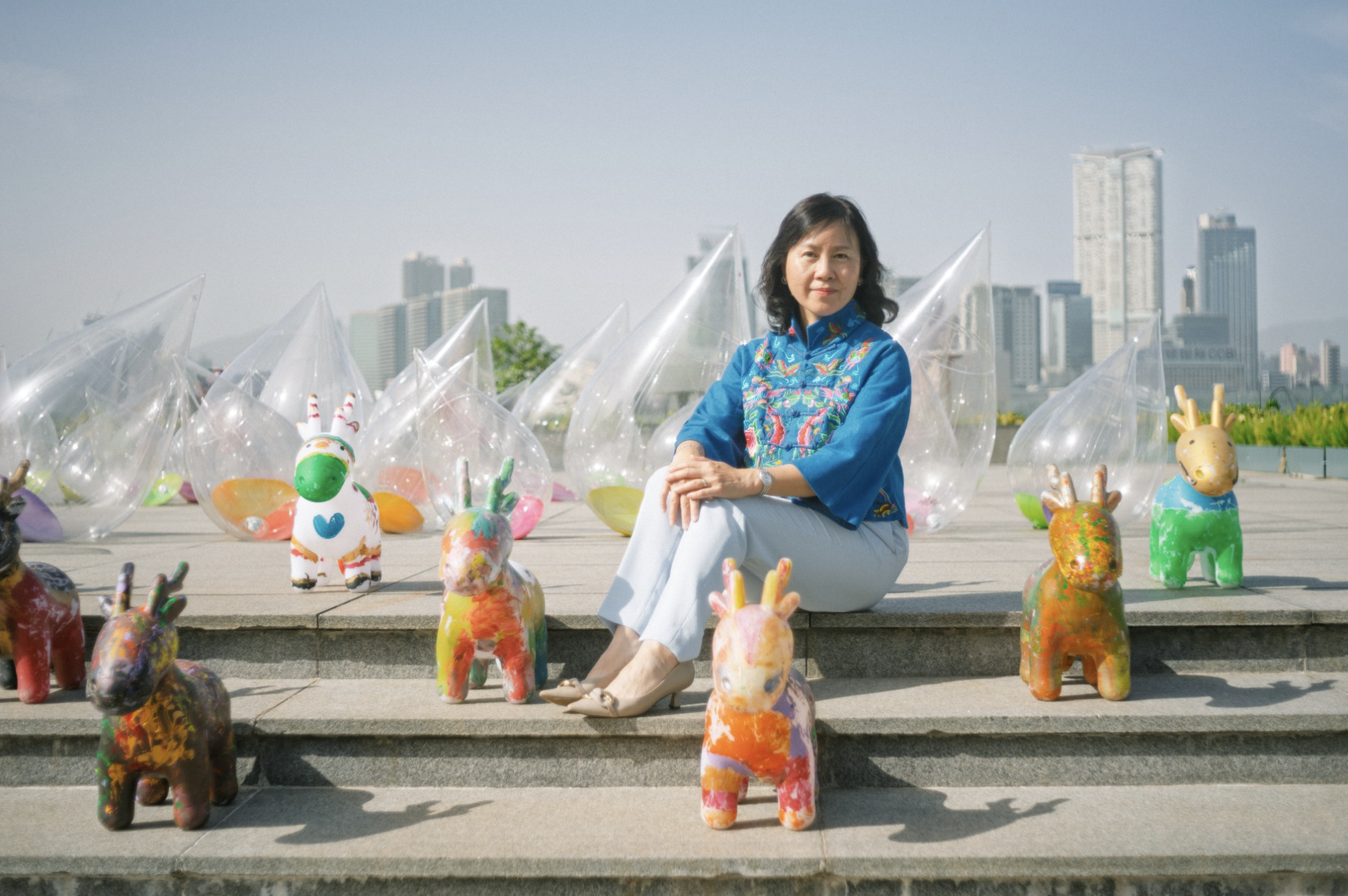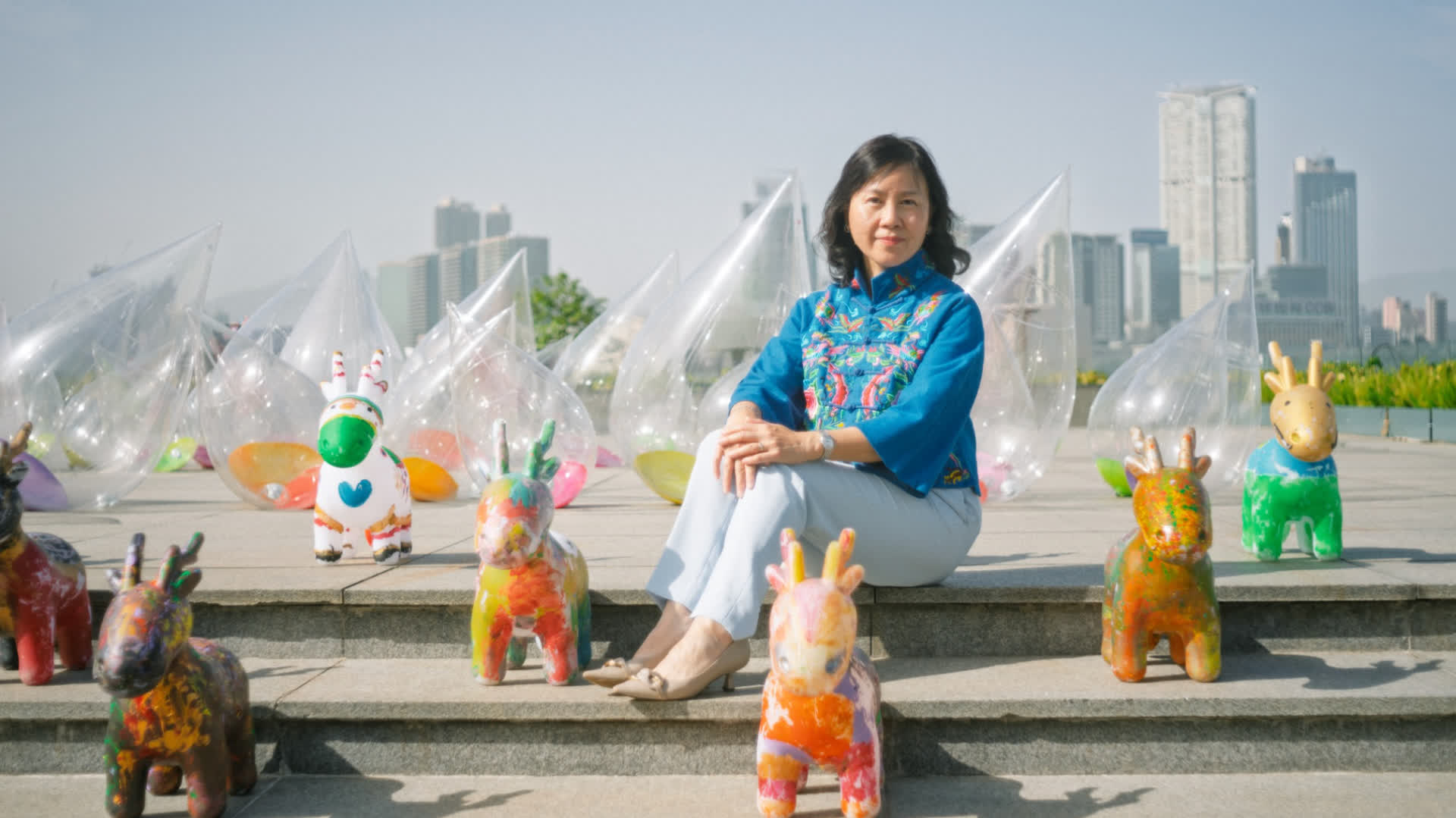運輸及物流局局長陳美寶今日(22日)到金鐘添馬公園參加「舞動水滴展」,蔥鬱草地上的一點點水滴藝術裝置,連同香港最具代表性的維港天際線,是紀念飲水思源、一脈相連60年這個重要里程碑的最佳標誌。陳美寶在慶祝東江水持續為香港注入活水的同時,亦與同事和主辦單位的朋友在藝術裝置前「打卡」留紀念。