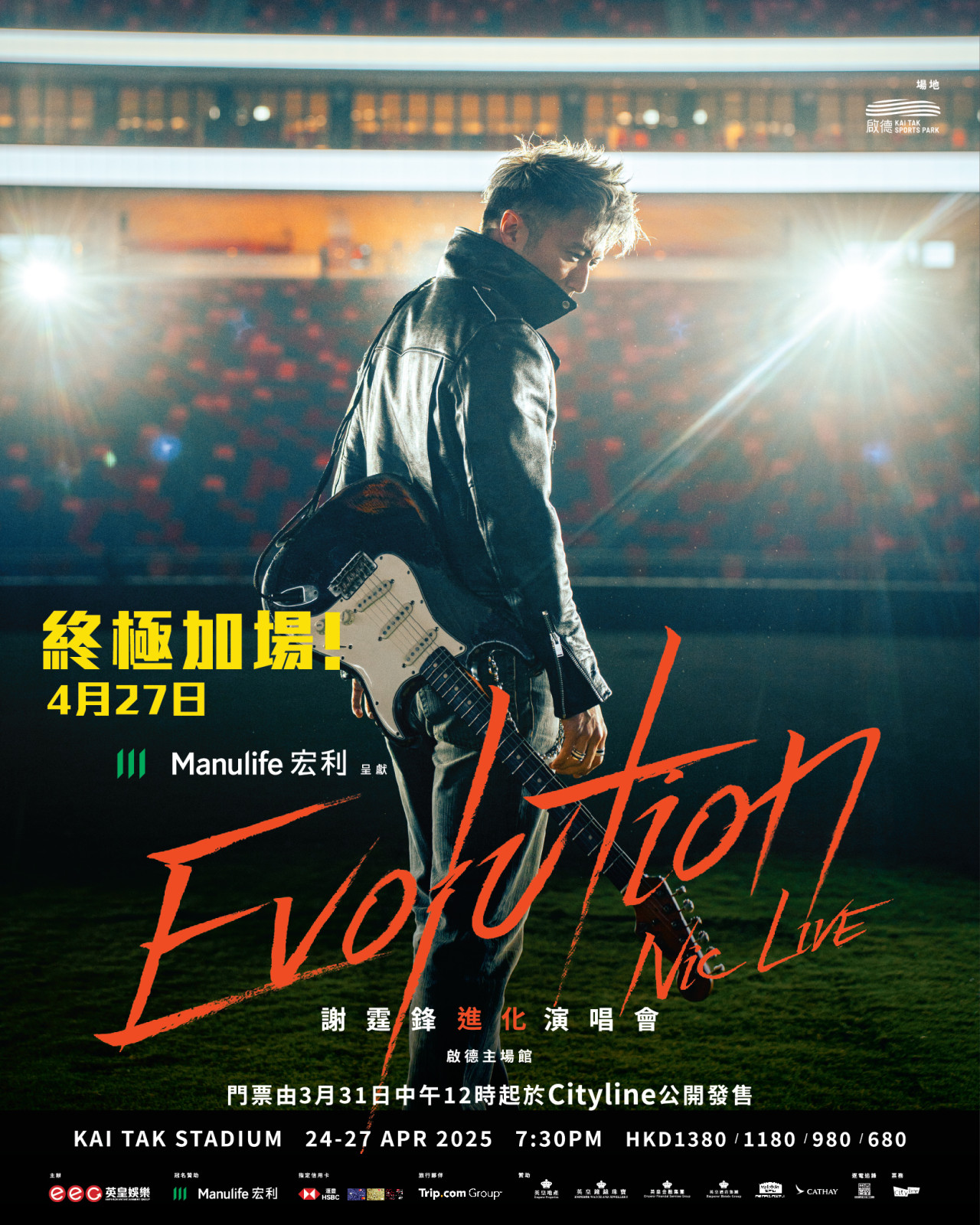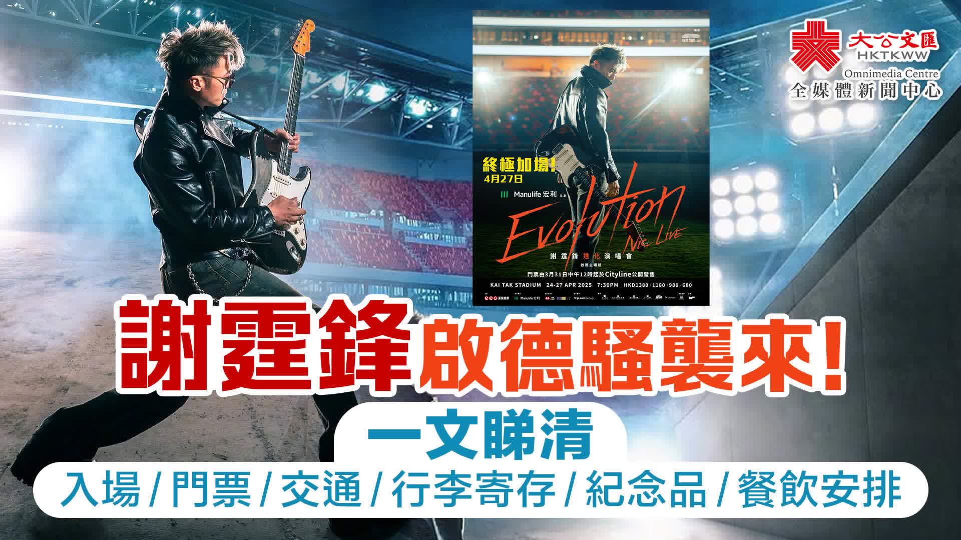 大公文匯全媒體報道,謝霆鋒相隔廿五年再開個唱,將於本周四起一連四日(4月24日至27日)在啟德體育園主場館舉行《Evolution Nic Live謝霆鋒進化演唱會》。啟德體育園提醒歌迷演唱會在晚上7時30分開始,持票人士可於下午4時30分開始安檢,並於下午5時30分開始入場。大家入場前記得「做定功課」,提前了解入場、門票、交通、行李寄存、紀念品銷售、餐飲安排等。