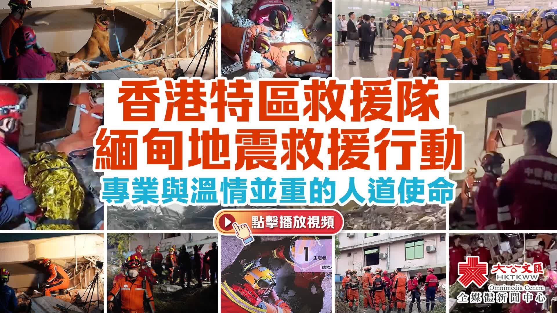(大公文匯全媒體 記者 鄭洢林) 3月28日下午,緬甸發生7.7級強震,造成重大傷亡。香港特區政府接獲國際救援請求後,迅速啟動應急機制,由消防處、保安局、醫療局及入境處組成的51人專業救援隊攜9噸物資,於地震次日抵達災區,成為第六支抵達的國際救援隊伍,向世界展現香港的國際責任與高效行動力。