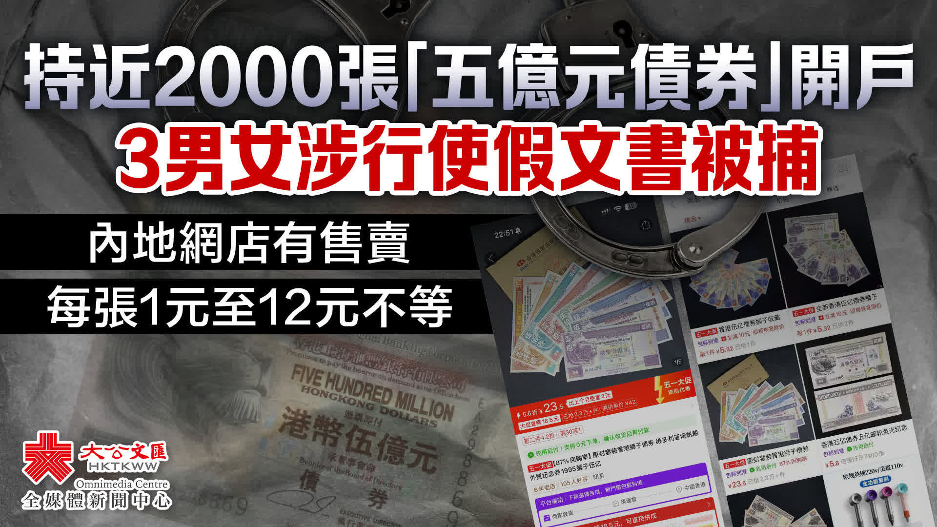 資料顯示,2017年,警方「商業罪案調查科70周年展覽」曾展出相關物品,顯示有騙徒將「20元紙幣」變成「5億元債券」。