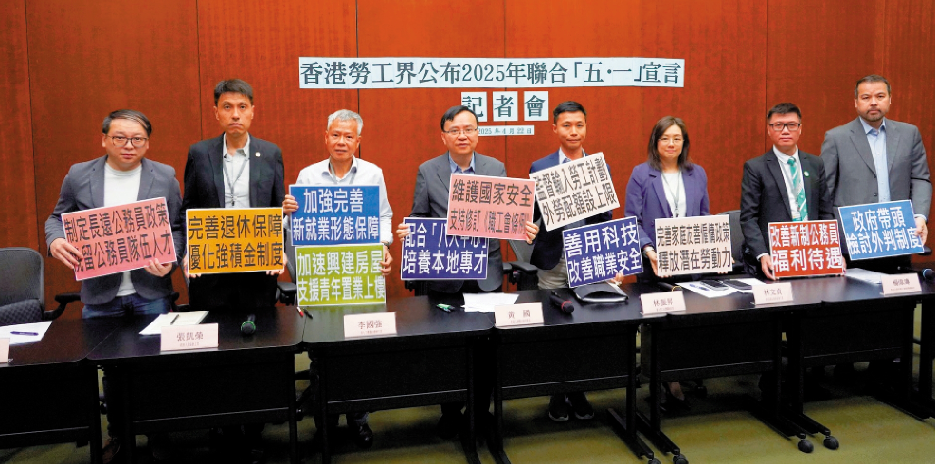 (大公報記者 龔學鳴)下星期四是五一勞動節,本港勞工界昨日發表聯合「五·一」宣言,向特區政府提出10項政策建議。
