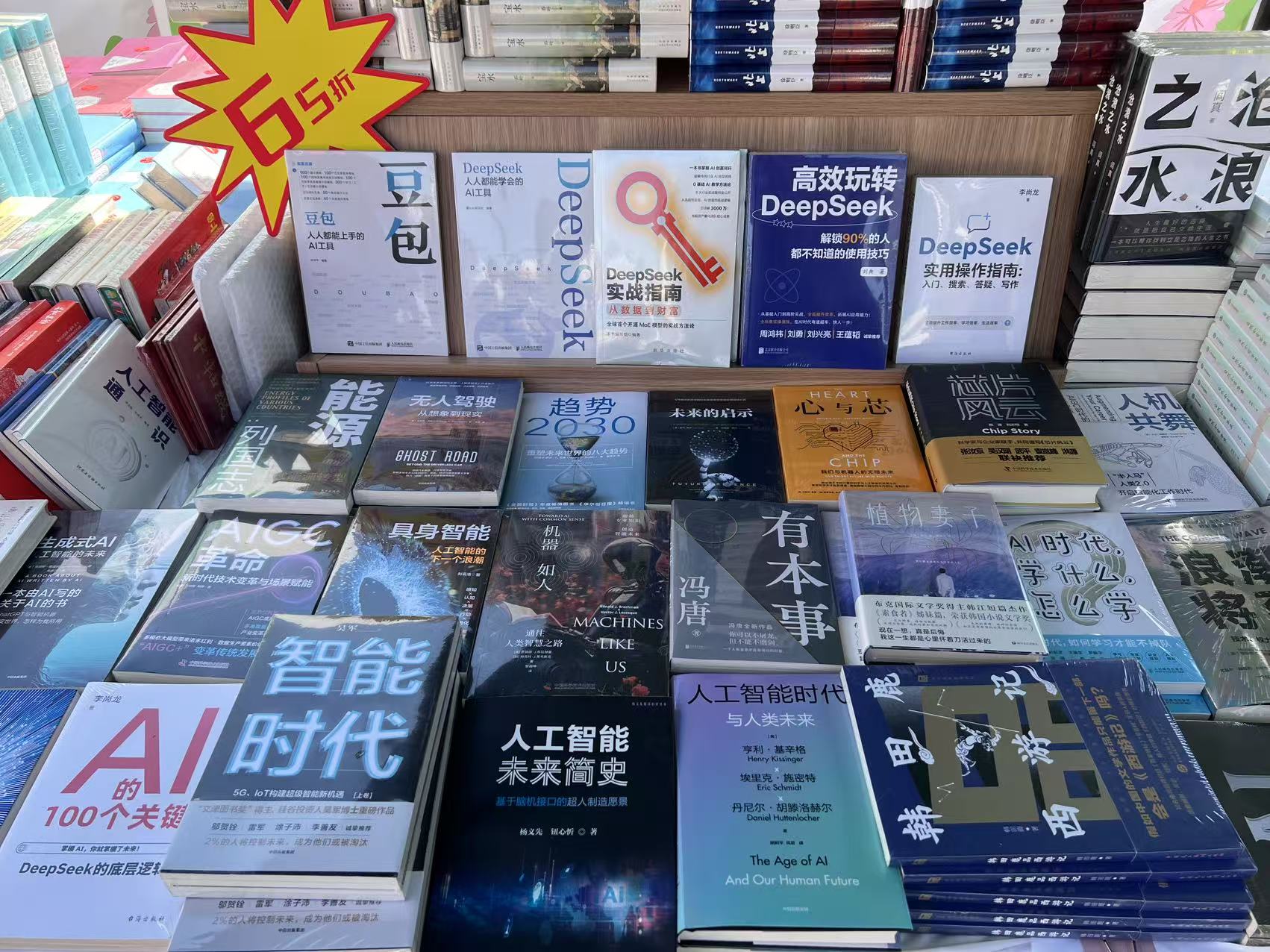 《DeepSeek新浪潮:搶佔AI時代》《豆包:人人都能上手的AI工具》《DeepSeek實用操作指南》……人工智能如今已成為數字時代的「必修課」,記者在朝陽公園北京書市現場看到,今年書市最大的特色之一,就是多家書店和出版社的展台上都匯聚了AI相關的書籍。中關村圖書大廈展位負責人康先生介紹,他們特地使用了展位三分之二的區域對常用的AI工具常識性讀物進行展示。他表示,如今AI已經不再是高不可攀的技術,而是可以融入日常生活的實用工具,相關書籍也成為許多人學習和了解AI的首選。「無論是年輕人還是孩子、老年人,都能從這些書籍中找到對自己有用的內容。今天許多退休的叔叔阿姨來買書時候都說,必須多學習AI才能跟上時代潮流。」