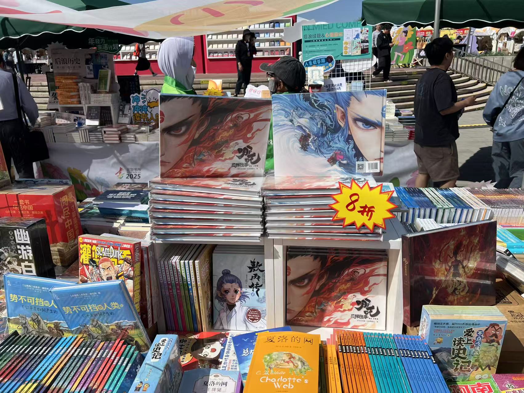 今年,北京書市的實體書店街區進一步擴容,邀請了中信書店等70多家北京特色書店及南京先鋒書店、杭州南宋書房、成都熊貓書店等京外「網紅」書店。值得一提的是,中信書店為讀者帶來了爆火的《哪吒》電影《三界往事》官方繪本故事以及《藝術設定集》《敖丙傳》等,可以充分滿足《哪吒2》廣大影迷的需求。書店負責人介紹,《哪吒·三界往事》主要是電影的一些故事的補充,比如說石磯娘娘在她的小山上去養小貓,申小豹是怎麼把自己修成人形的。《哪吒之魔童鬧海 藝術設定集》則展示了電影5年製作過程背後的故事。