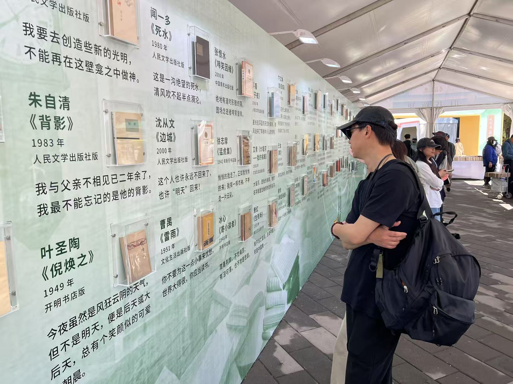 王府井書店以「ctrl+歷史的回聲」為主題,呈現了由北京出版集團、中國出版集團、中華書局等百餘家出版社的3000多種新書和暢銷書,如北京文化書系、北京中軸線系列圖書等。廣西師範大學出版社則推出了百年「諾貝爾文學獎」作家文集展,包含加繆、莫言、陀思妥耶夫斯基等知名作家的作品。「為了本次書市,我們還特意定製了陀翁印簽金句雙刷版《地下室手記》,包含藏書票、明信片,希望通過這個展覽向大家推薦更多的好書。」工作人員表示。