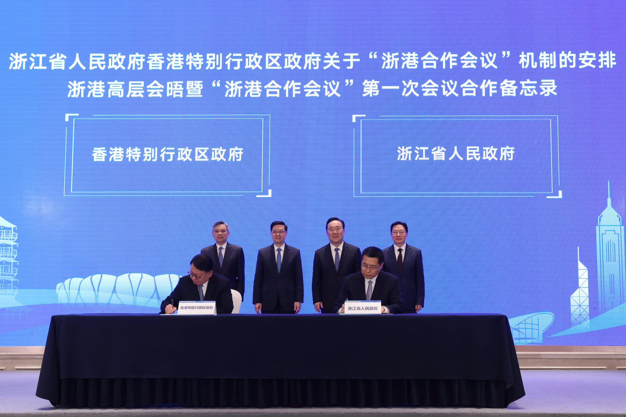 浙江省副省長盧山與香港特區政府政務司司長陳國基共同簽署《浙江省人民政府香港特別行政區政府關於「浙港合作會議」機制的安排》和《浙港高層會晤暨「浙港合作會議」第一次會議合作備忘錄》。浙港兩地在13項重點合作領域,共51個項目達成共識。