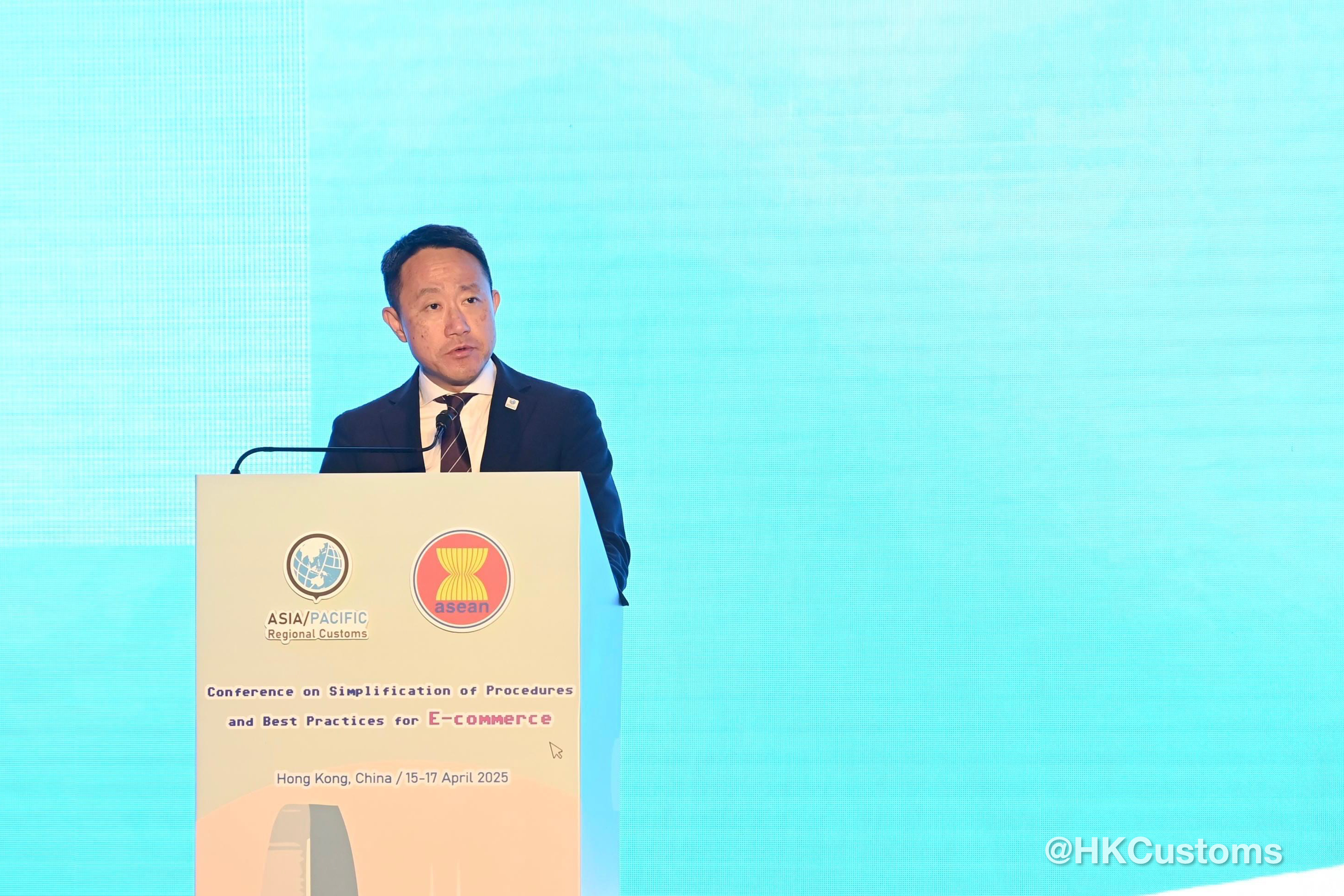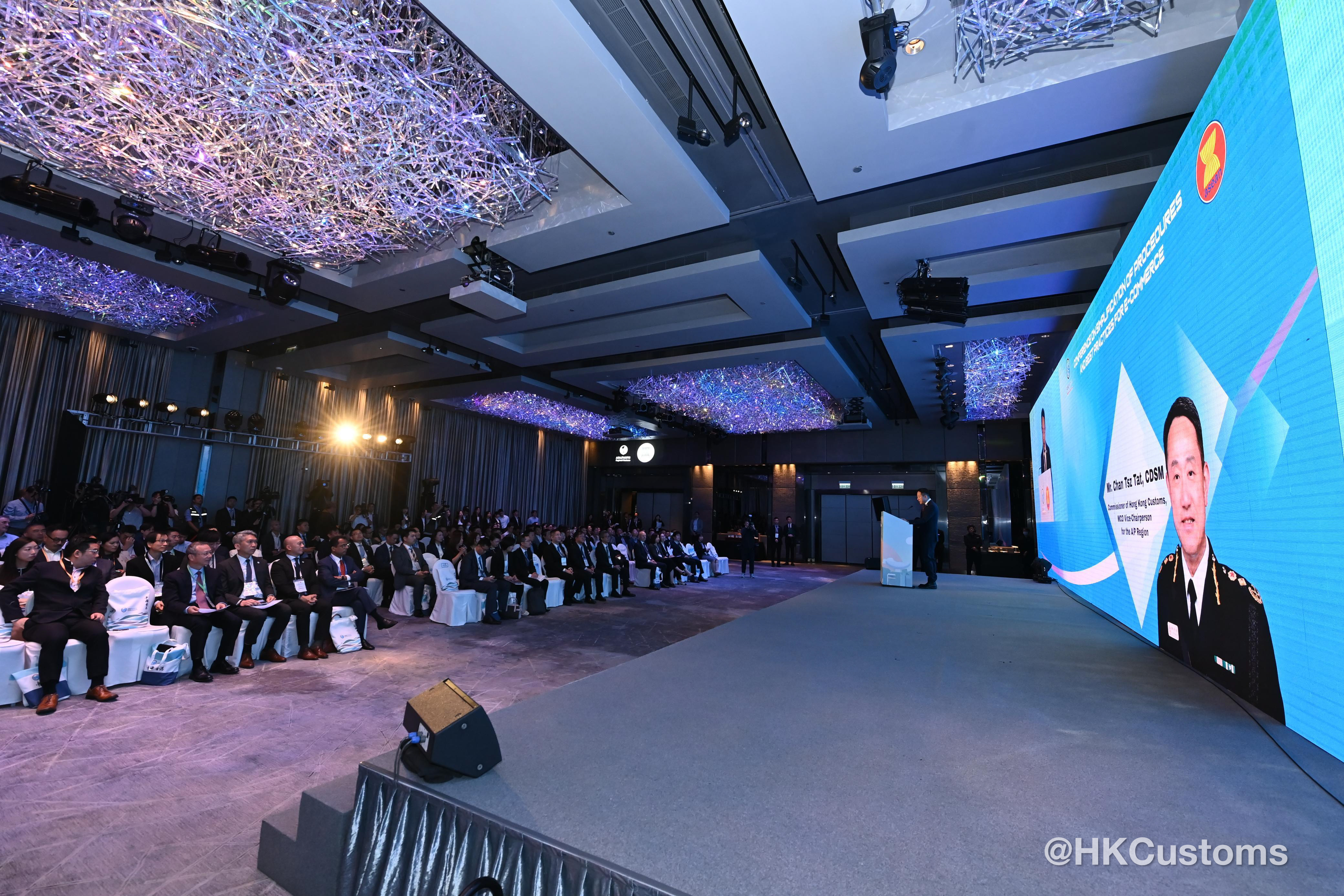 陳子達以世界海關組織亞太區副主席身分致歡迎辭時指,會議旨在加強電子商貿生態圈中的合作夥伴關係,探討並推動電子商貿於亞太地區的未來發展。他強調優化清關流程和加快貨物流動,不僅能促進貿易便利化,同時提升海關運作效率。而在便利化與執法之間取得平衡,對維護跨境貿易的安全與穩定性至關重要。