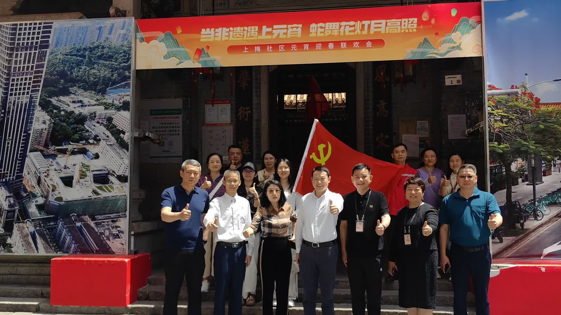 在上梅林村黃氏梅莊黃公祠,黨員們神情專注地聆聽革命故事,並結合自身工作實際,開展深入學習交流,共同探討如何將紅色精神融入日常工作。黃公祠始建於明代,村口牌坊上「繼往開來」四個大字遒勁有力,是上梅林黃氏後裔舉辦祭祀活動、維繫宗親感情的重要場所。抗日戰爭時期,上梅林村村民積極投身「文化名人大營救」等抗日救亡運動,留下諸多英勇事跡,此地也被譽為華南抗日武裝的堅強後盾之一。這座祠堂不僅見證了上梅林深厚的歷史淵源,更成為黨員們傳承紅色精神的生動課堂。