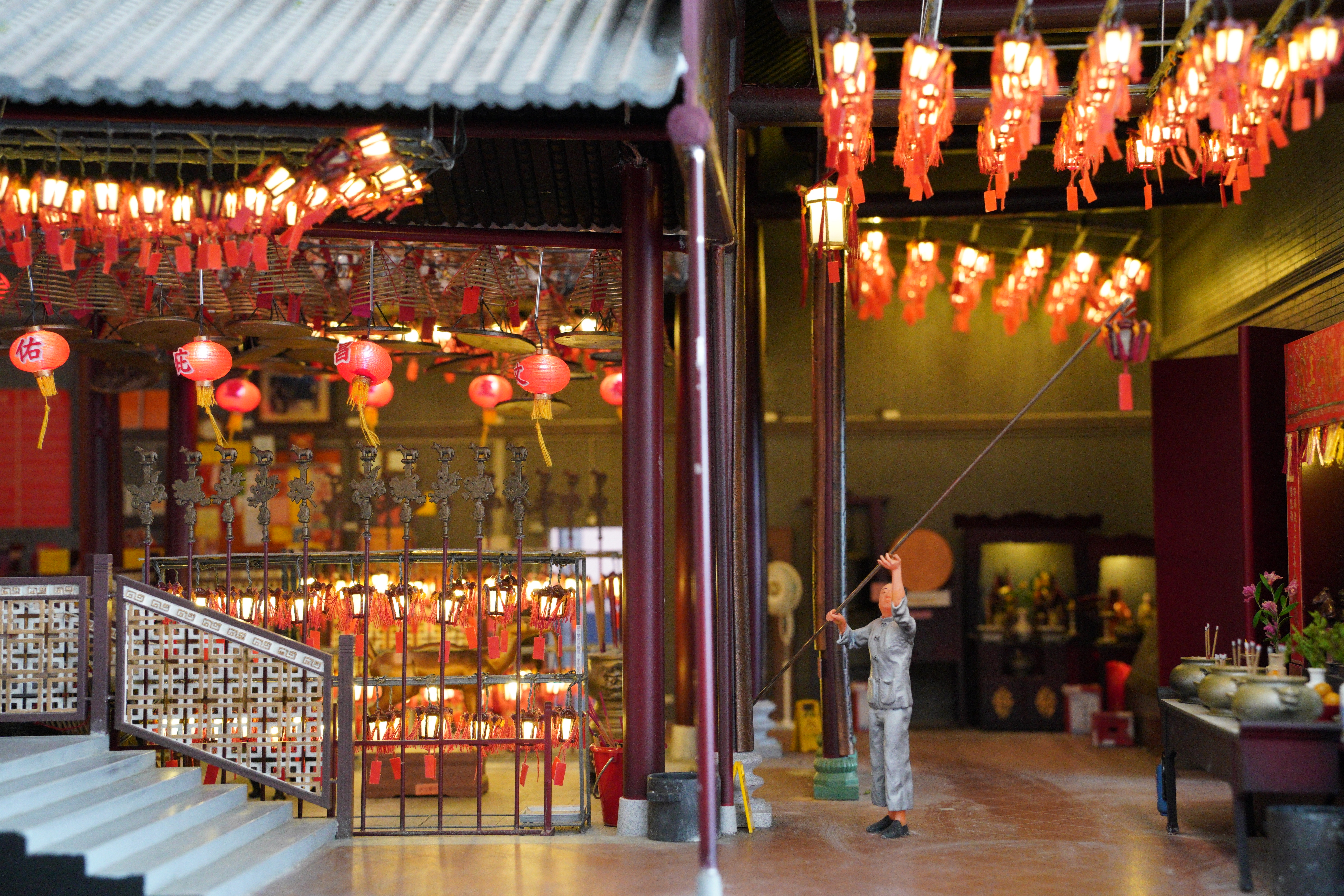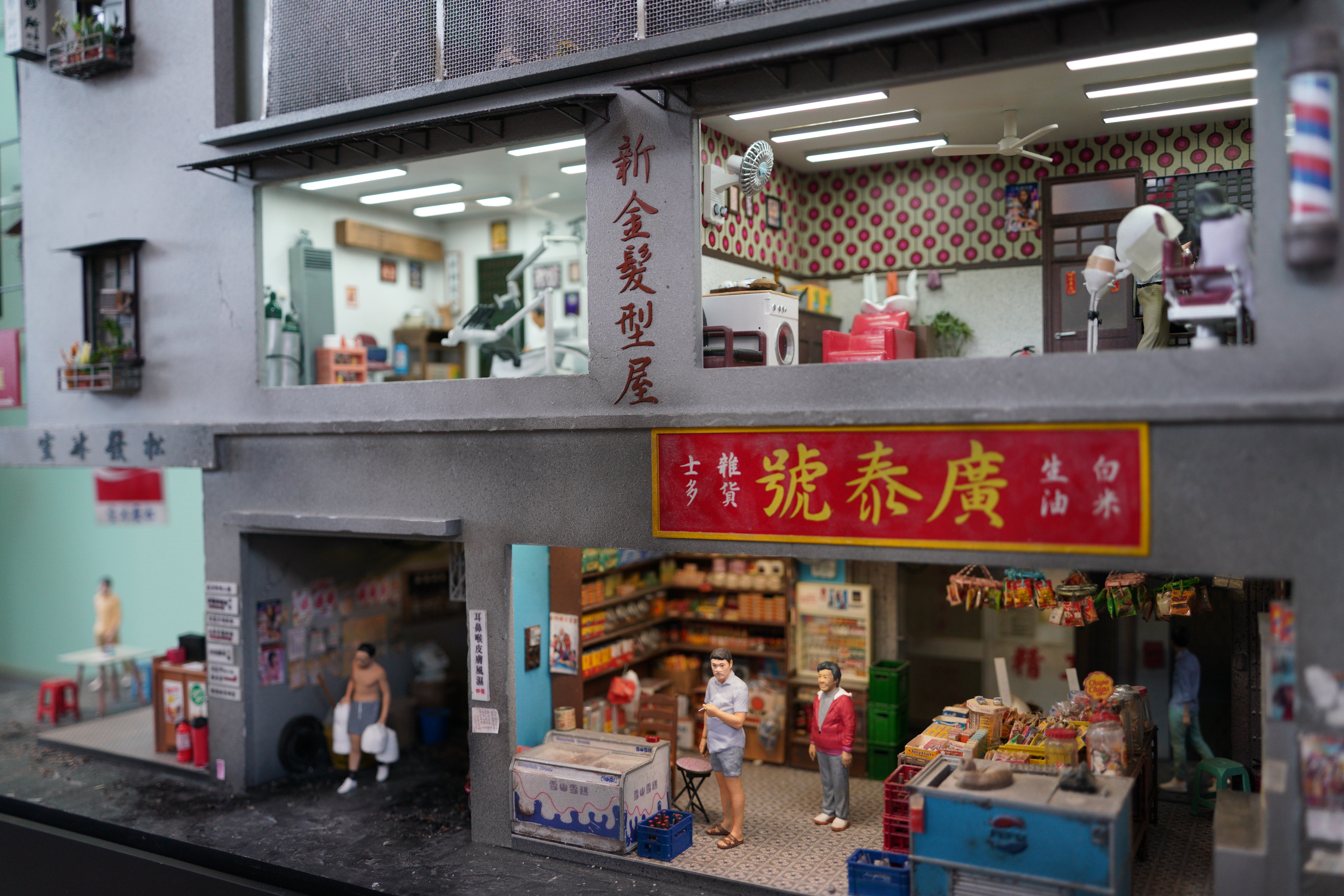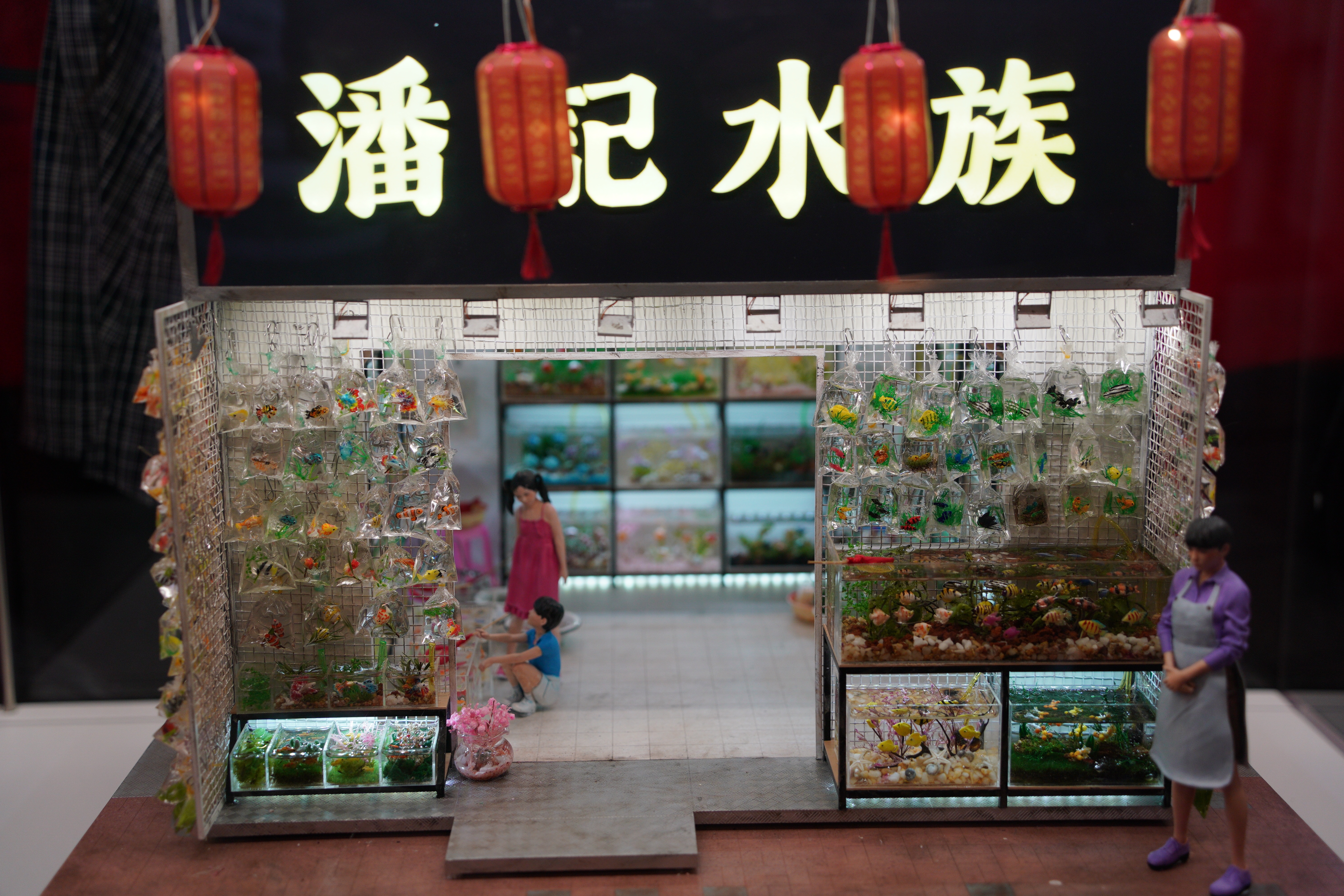 這裏一共展出了24件微型藝術作品,展現香港的地標、習俗以及生活特色。《啟德主場館》將謝霆鋒演唱會的熱烈氛圍濃縮小小的空間裏,讓人彷彿能感受到現場的激情澎湃;《九龍城寨》糅合了電影元素與歷史,充滿年代的傳奇色彩;《廟街夜繽紛》中,熱鬧的街景充滿濃郁的港式風情;《金魚街一角》則精細還原了每一條金魚。