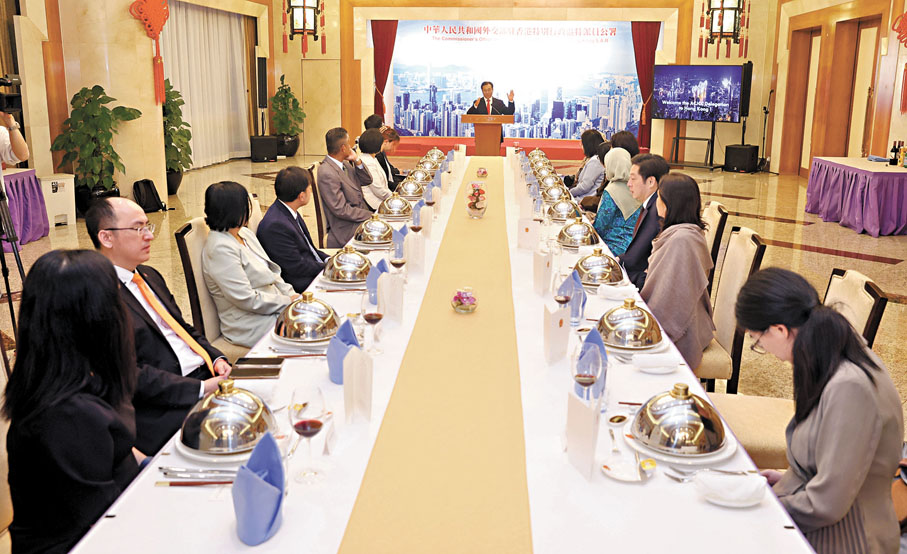 代表團昨日傍晚出席外交部駐港特派員公署所設的款待晚宴,崔建春致辭時,開篇即點明「一國兩制」是香港長期繁榮的核心保障。國際社會對「一國兩制」時有誤解,但實踐證明,「一國兩制」既維護國家主權,又保留香港特色,為解決歷史遺留問題樹立典範。